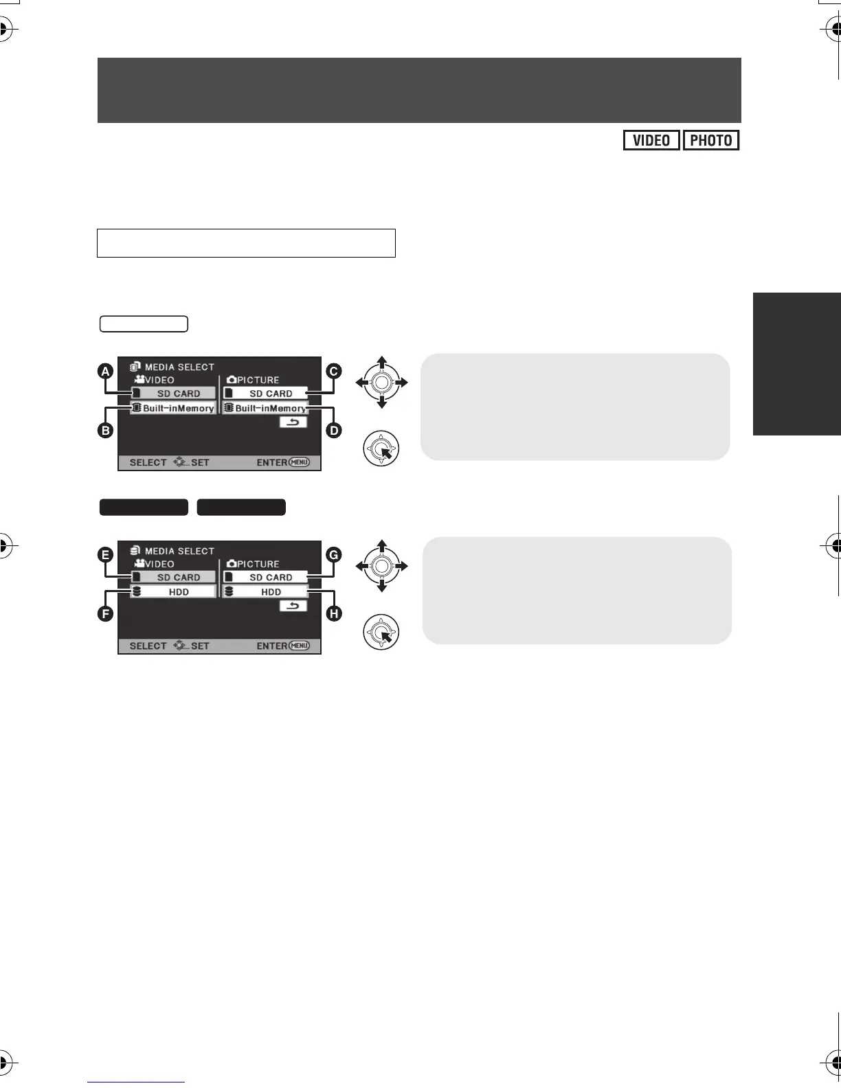 Selecting a media to record [SDR-T70]/[SDR-H100]/