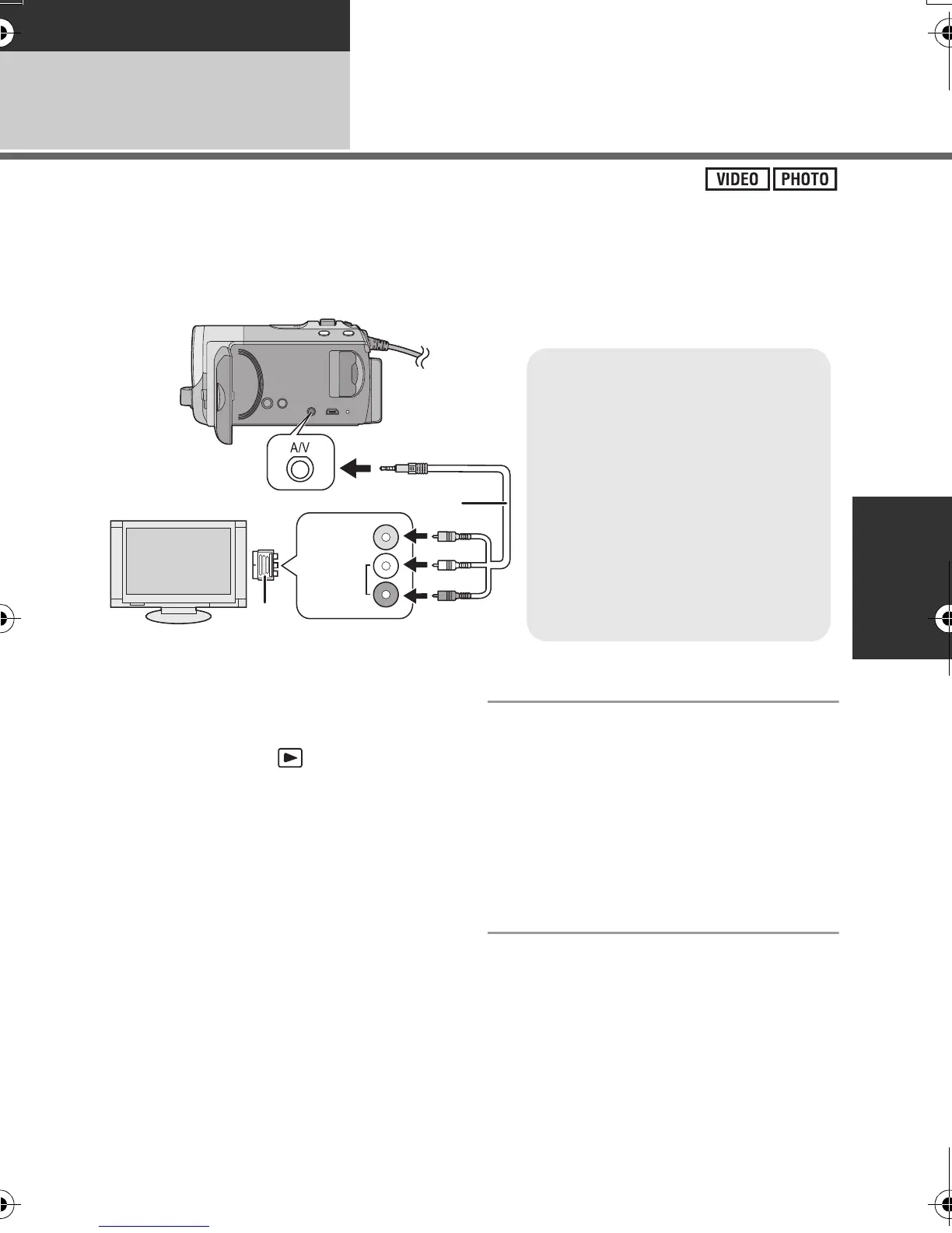 The motion pictures and still pictures recorded by this unit can be played back on a TV.