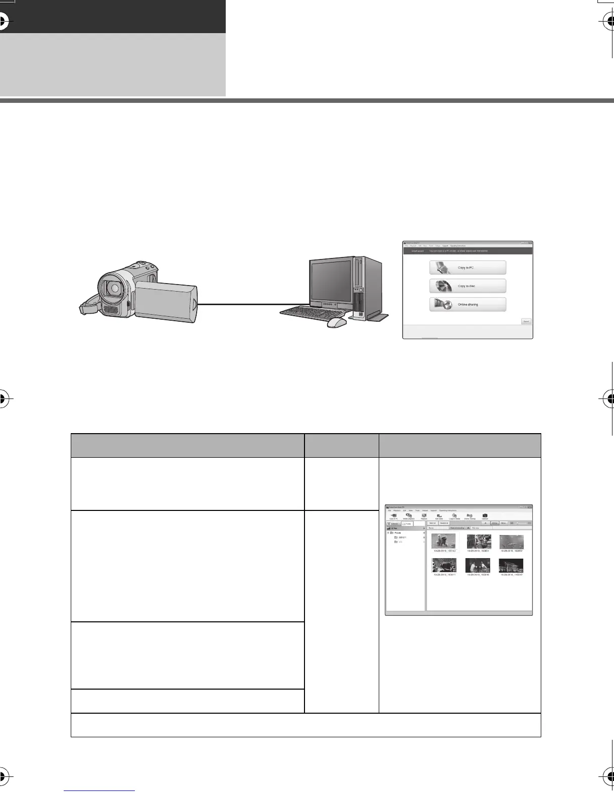 You can copy the motion/still picture data to the HDD of PCs or write to media like DVD discs