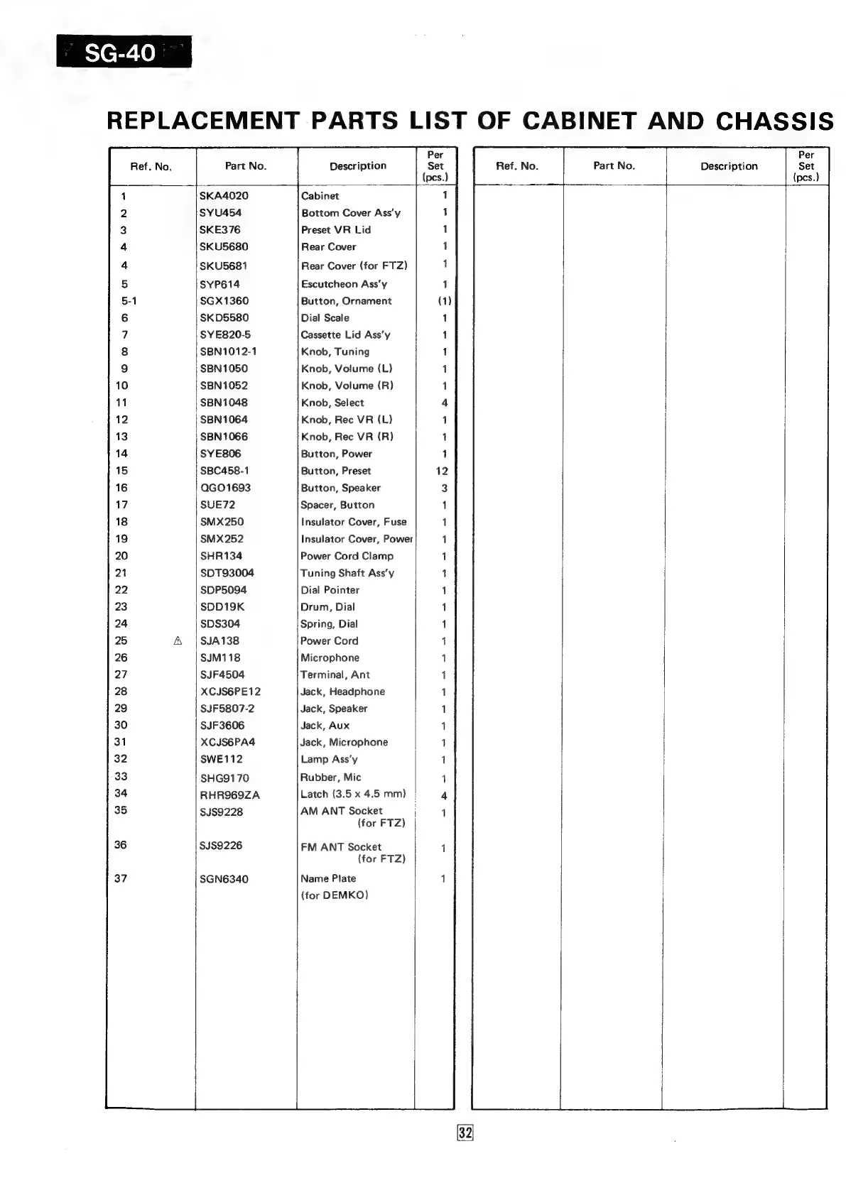 Panasonic SG-40 - Cabinet and Chassis Parts
