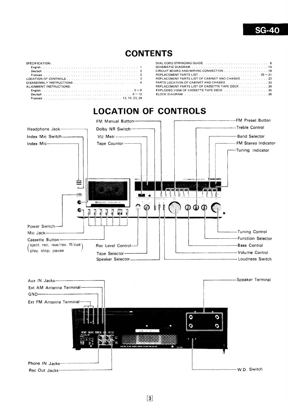 Panasonic SG-40 - Location of Controls; Control Panel Overview