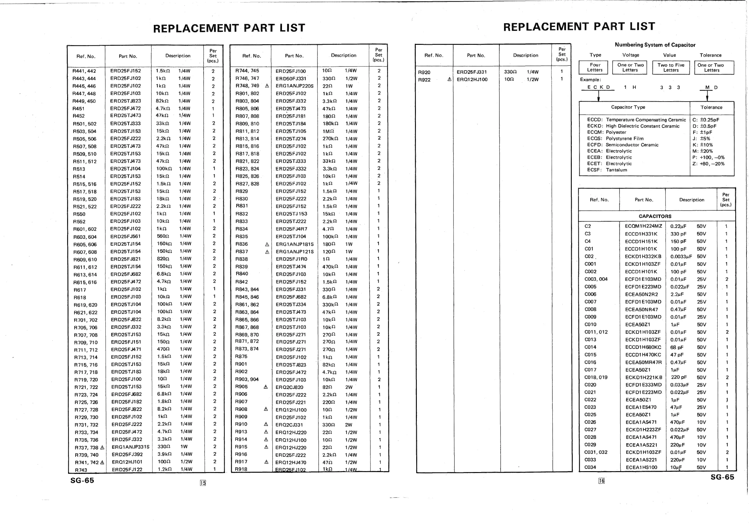Panasonic SG-65 - Replacement Parts List of Cassette Tape Deck (QUN1939)