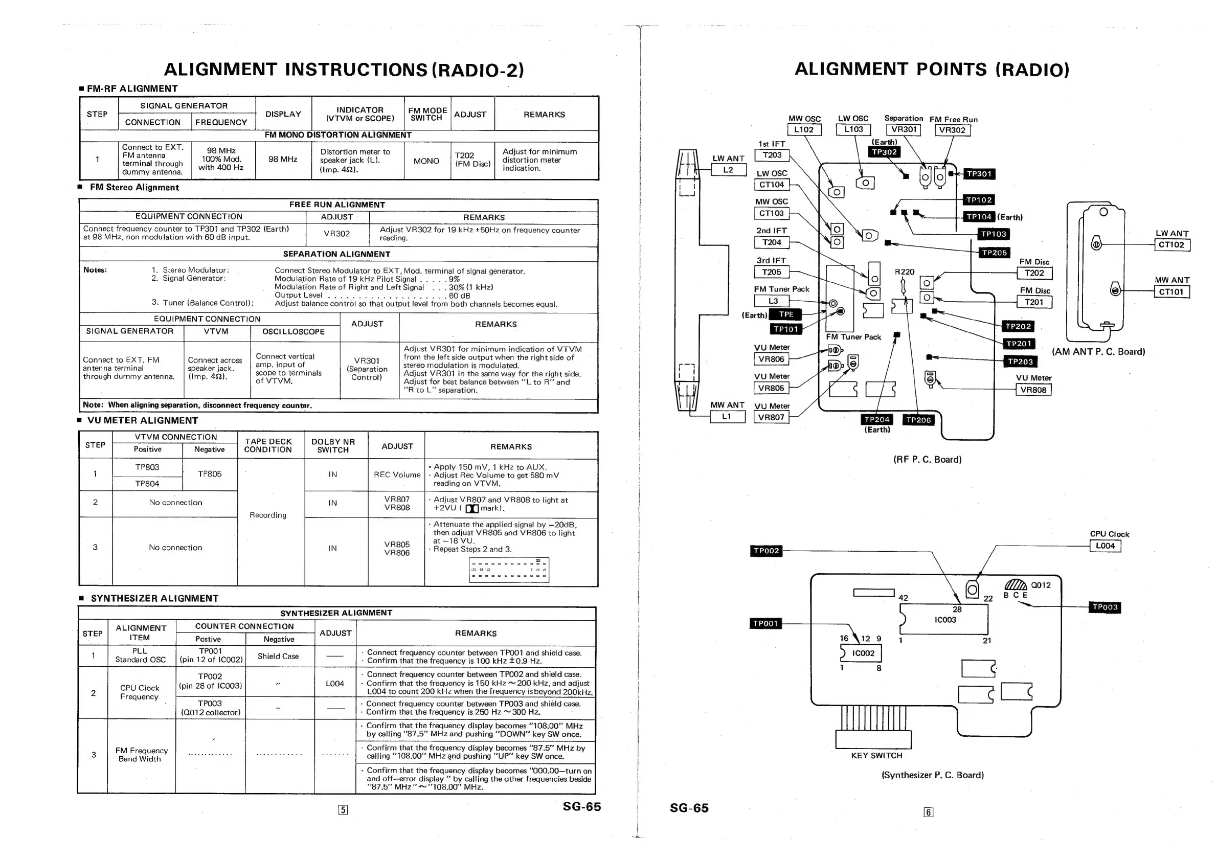 Panasonic SG-65 - Alignment Instructions (Radio-2); FM-RF Alignment; FM Mono Distortion Alignment; Free Run Alignment