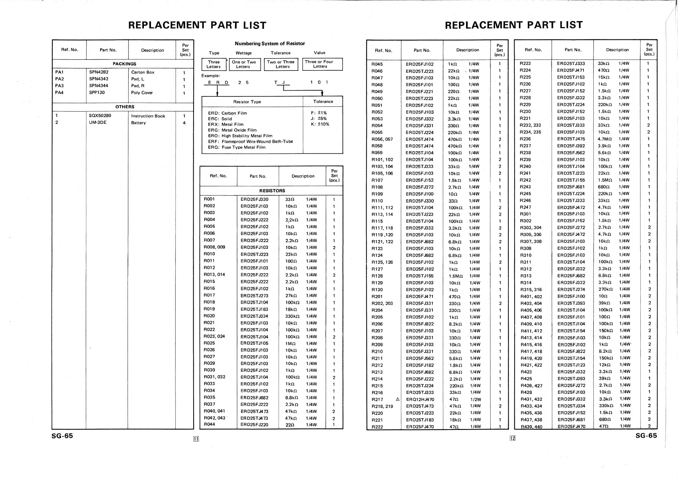 Panasonic SG-65 - Replacement Parts List of Cabinet and Chassis