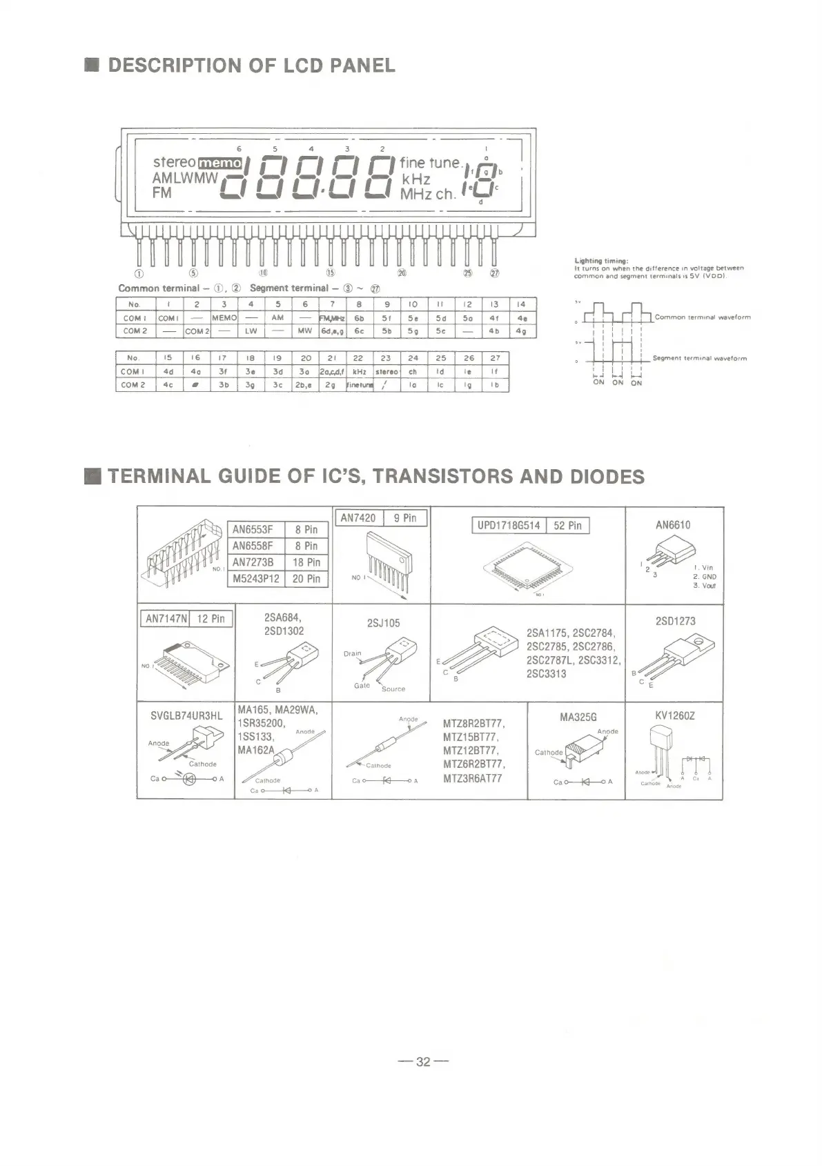 Panasonic SG-D16 - DESCRIPTION OF LCD PANEL; TERMINAL GUIDE OF ICS, TRANSISTORS AND DIODES