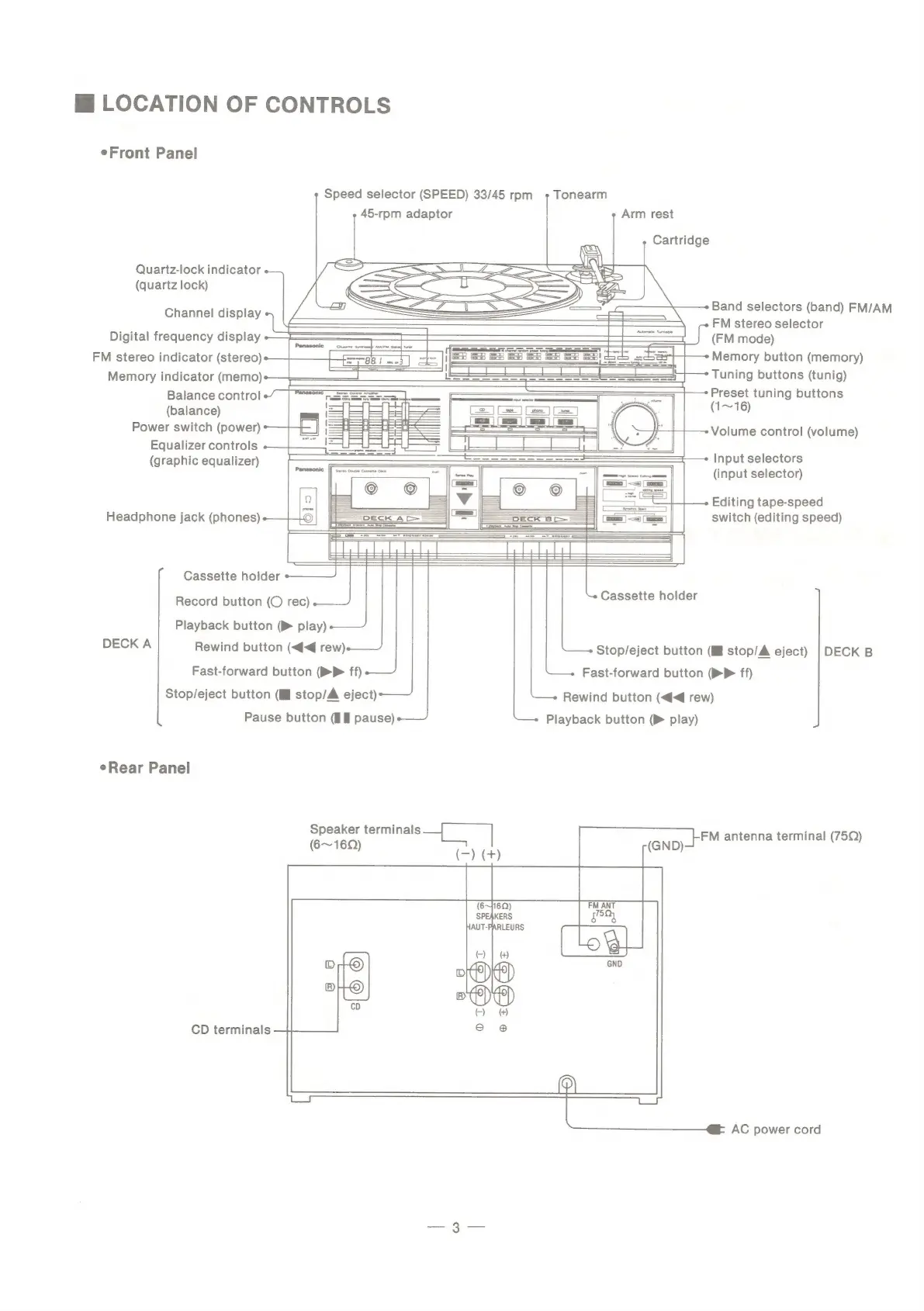 Panasonic SG-D16 - LOCATION OF CONTROLS; Front Panel; Rear Panel