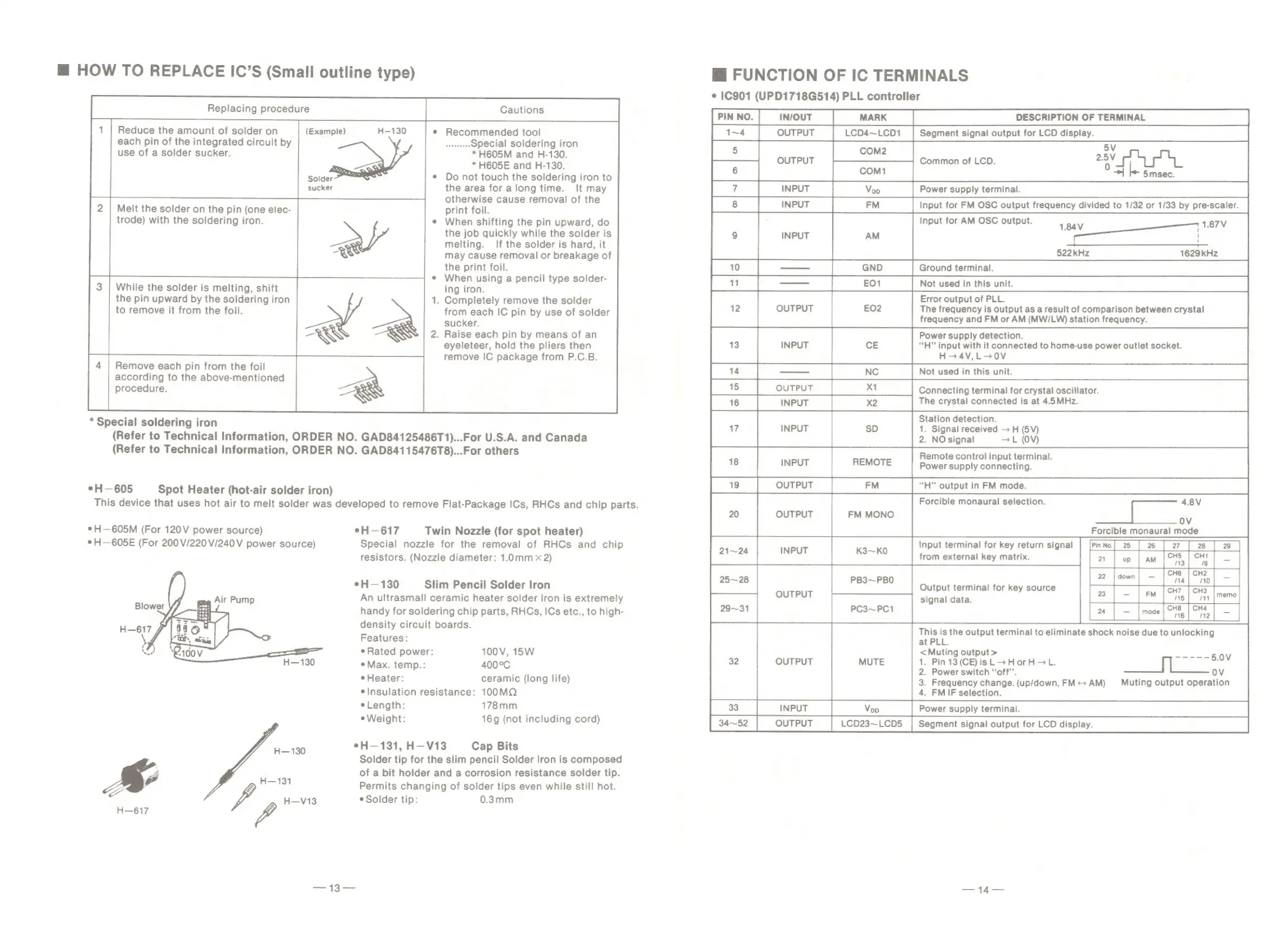 Panasonic SG-D16 - HOW TO REPLACE ICS (Small outline type); FUNCTION OF IC TERMINALS