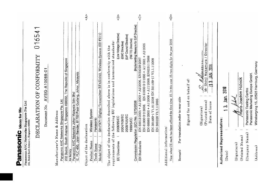Panasonic SH-FX71 - Declaration of Conformity; Compliance Information