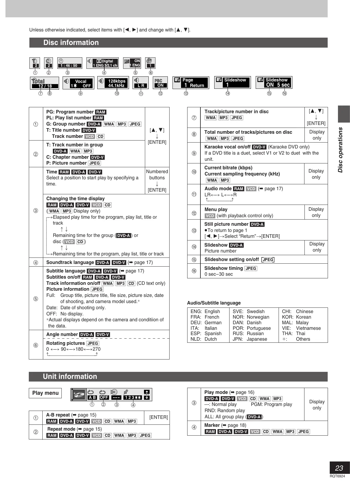 Subtitle language [DVD-A] [DVD-V] (➡ page 17)