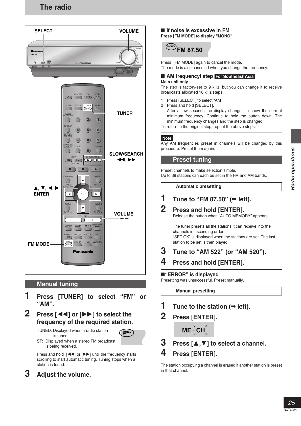 Panasonic SL-DT310 - Radio Operations: Tuning and Presets; Automatic and Manual Tuning Methods