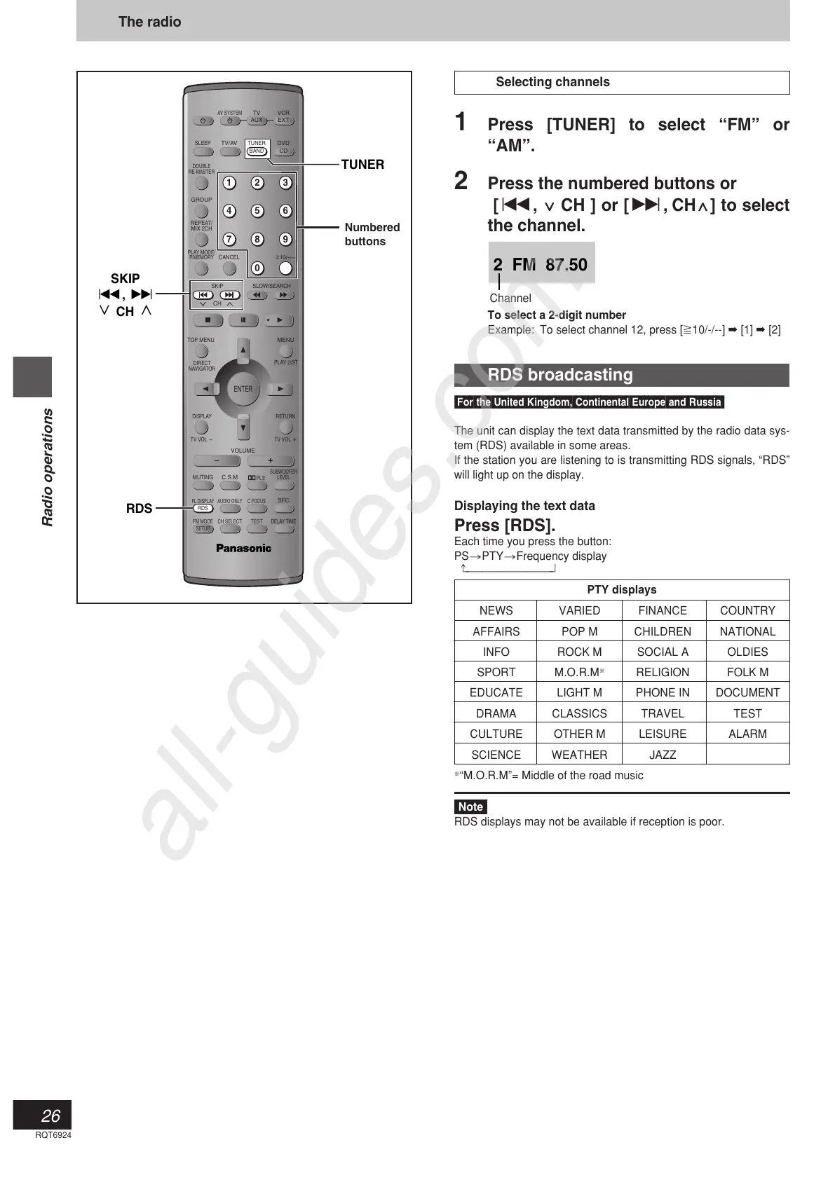 RDS displays may not be available if reception is poor.