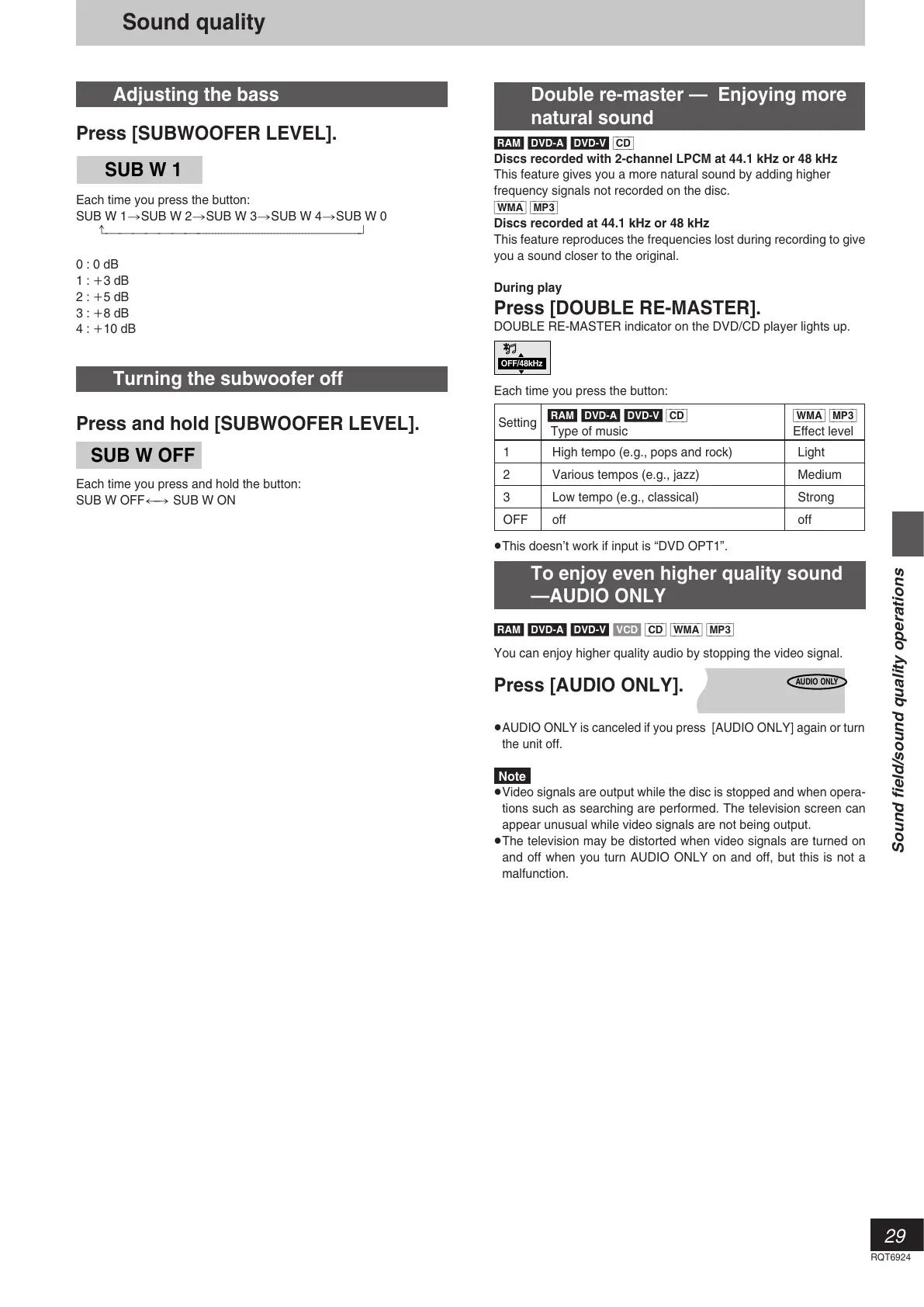 DOUBLE RE-MASTER indicator on the DVD/CD player lights up.