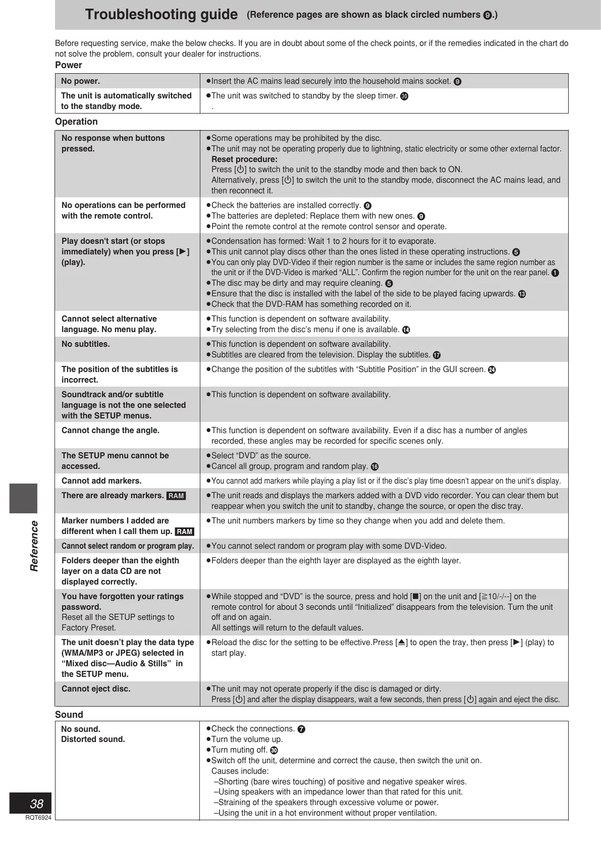 Before requesting service, make the below checks. If you are in doubt about some of the check points, or if the remedies indicated in the chart do