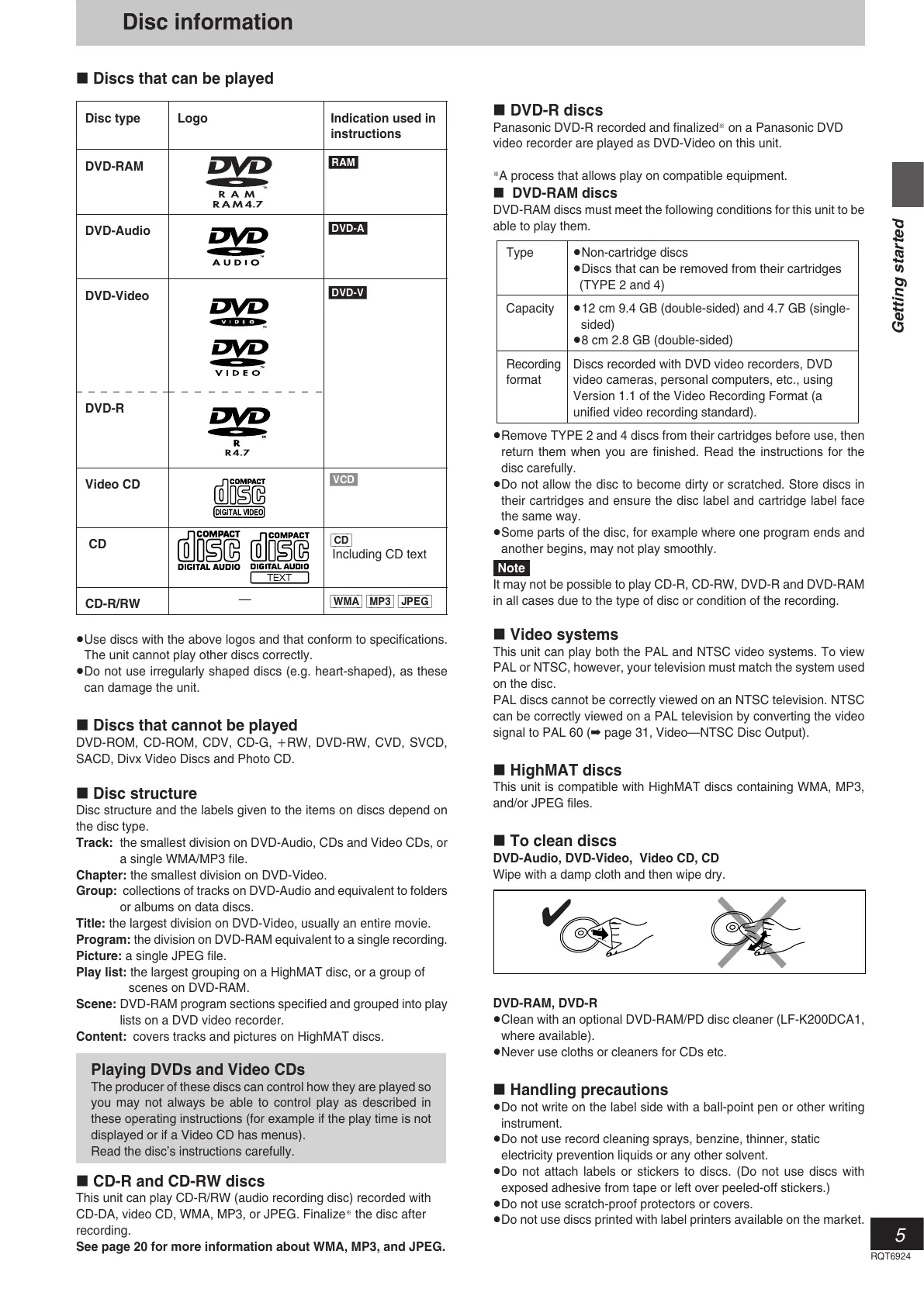 ≥Remove TYPE 2 and 4 discs from their cartridges before use, then