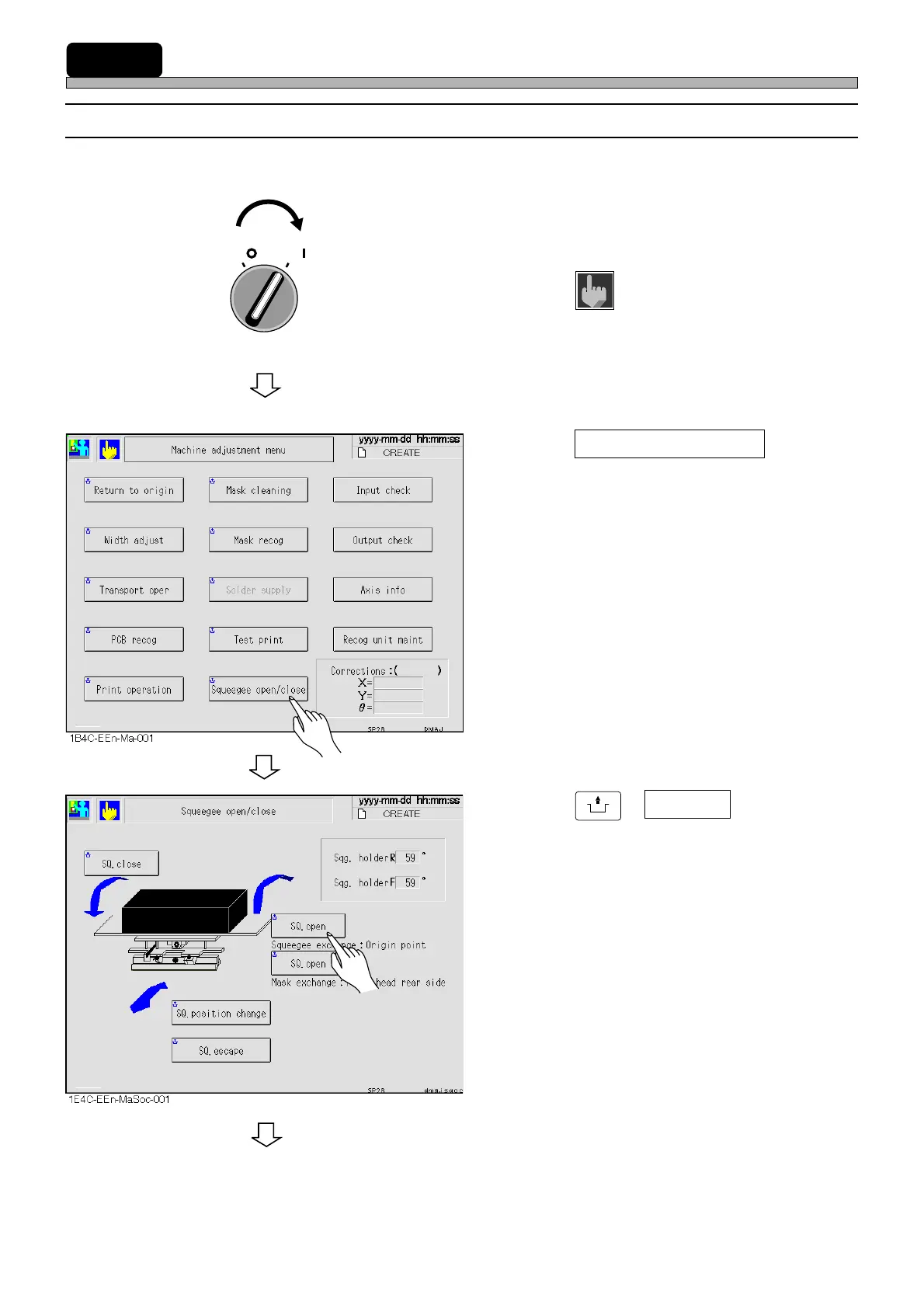 • “Squeegee open/close” screen is displayed.
