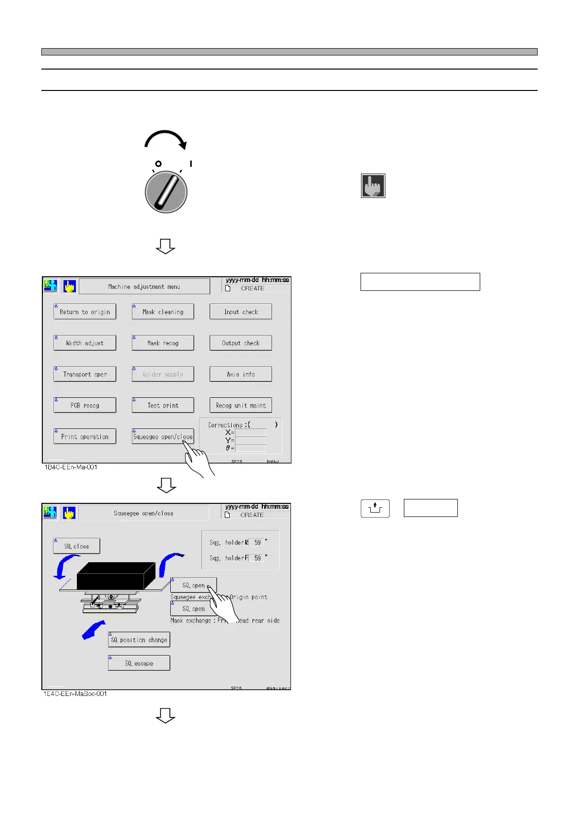 •“Squeegee open/close” screen is displayed.
