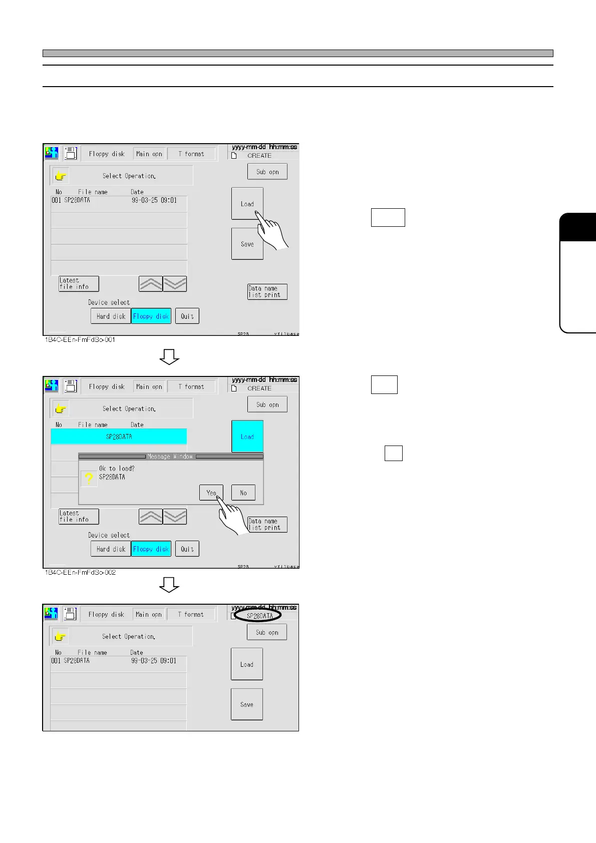 This part describes how to load the production data in the floppy disk to the memory of this ma-