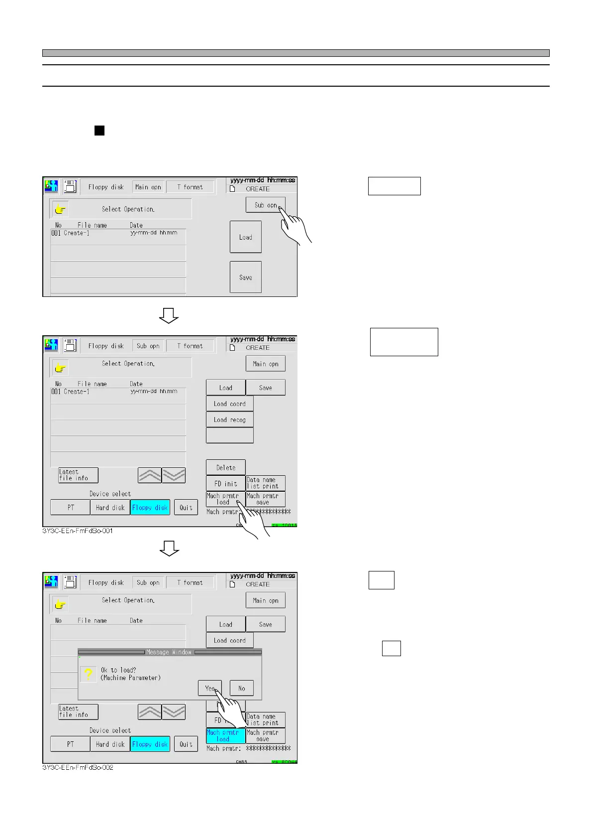 This part describes how to load the machine parameters in the floppy disk to the memory of this