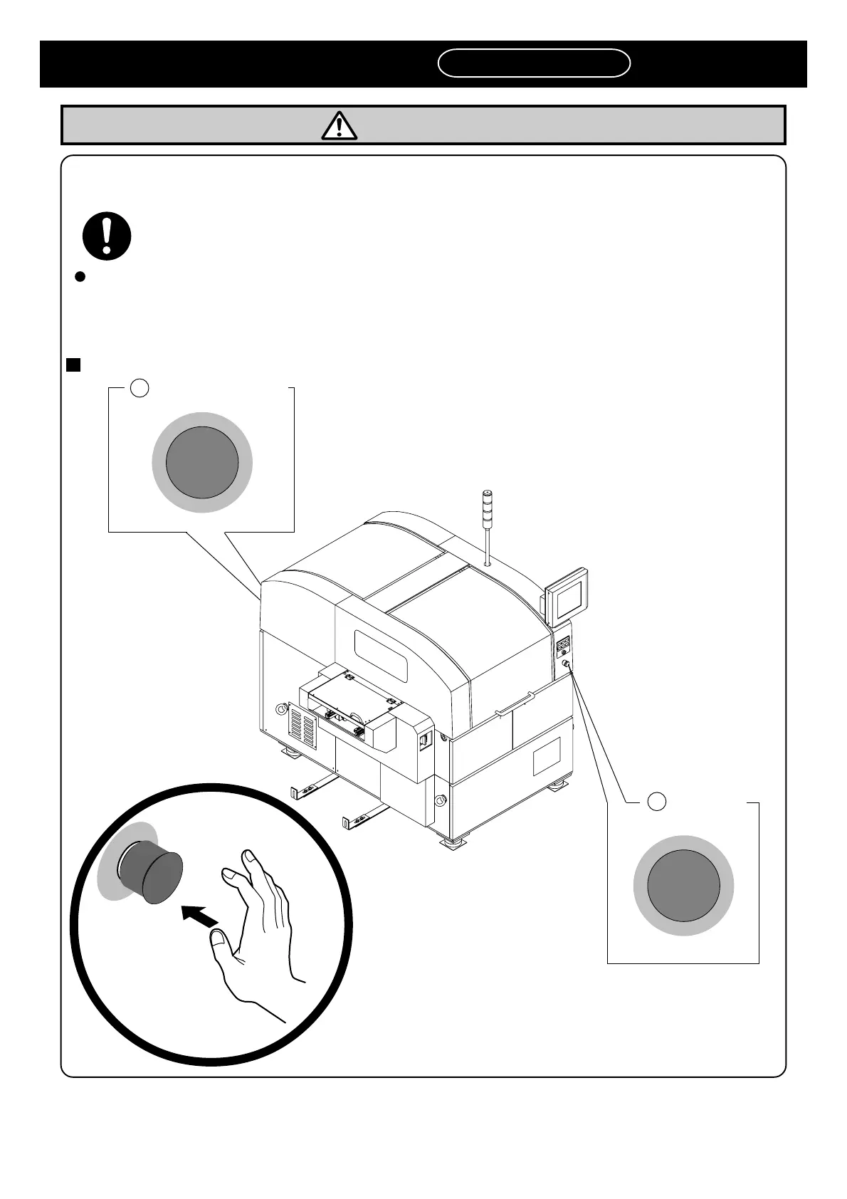 Remove the cause of the danger or abnormality, then re-start the machine. To reset the emergency stop