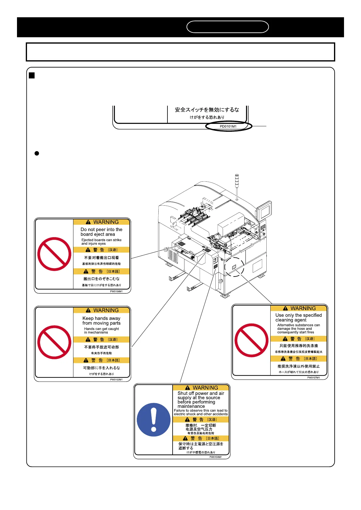 This is a label for ensuring the safe machine use. If you do not observe it, there is a risk of human injury or