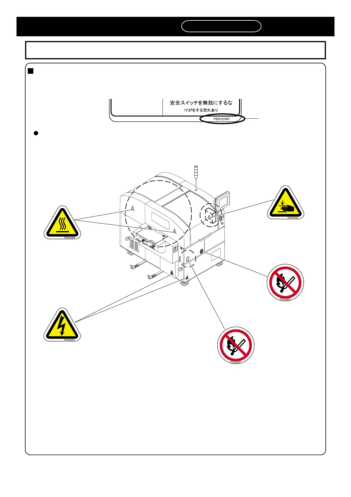 This is a label for ensuring the safe machine use. If you do not observe it, there is a risk of human injury or