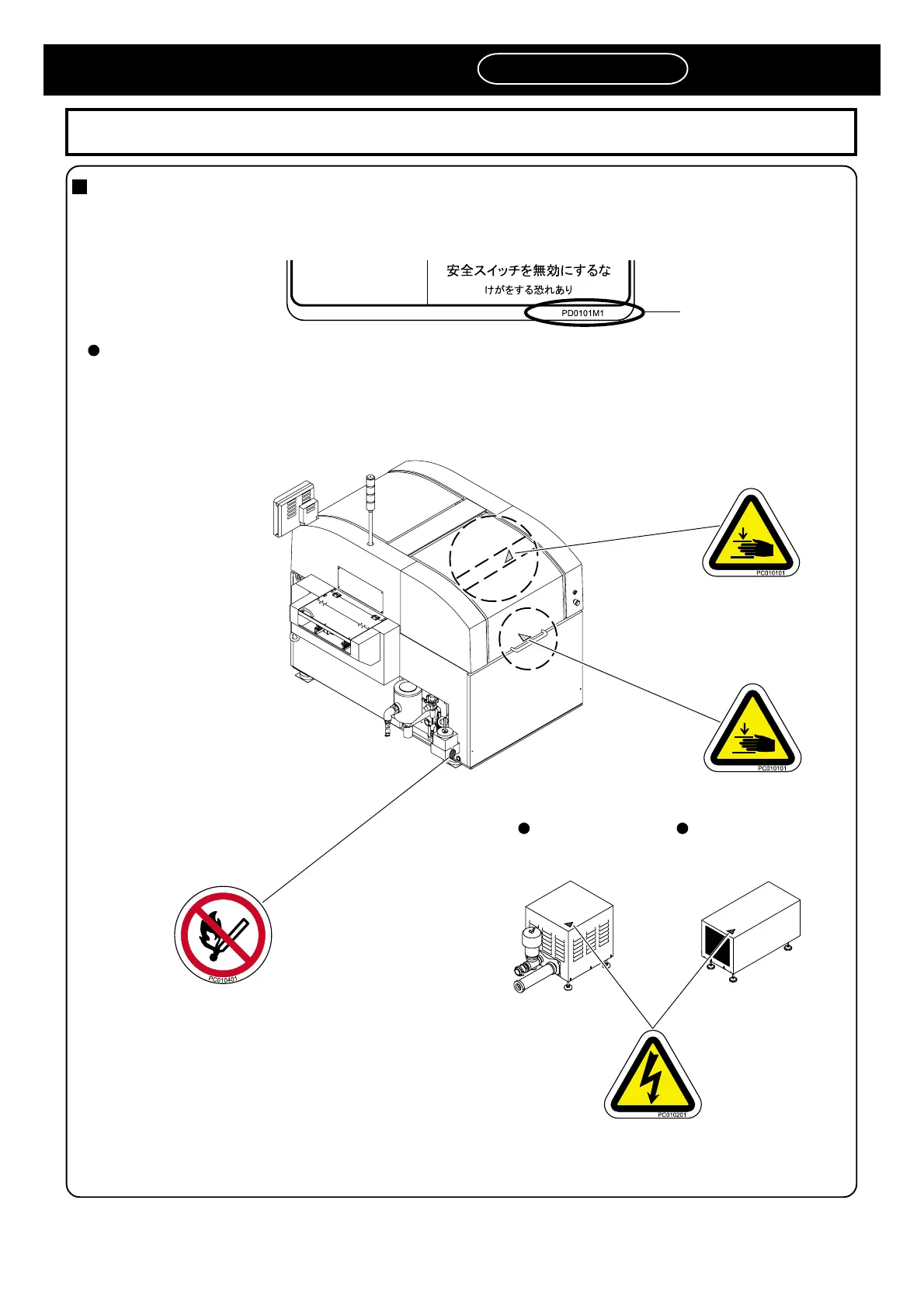 This is a label for ensuring the safe machine use. If you do not observe it, there is a risk of human injury or