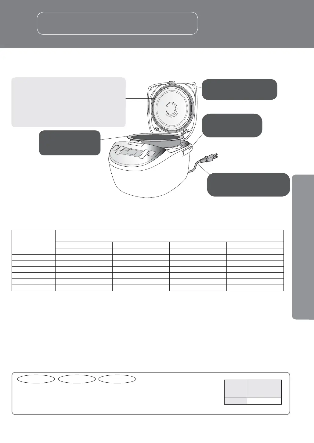 Remplissez d’eau en vous référant à l’échelle ‘’CUP’’ associée au niveau de l’eau située sur le côté du panier de cuisson. Pour le riz gluant, le