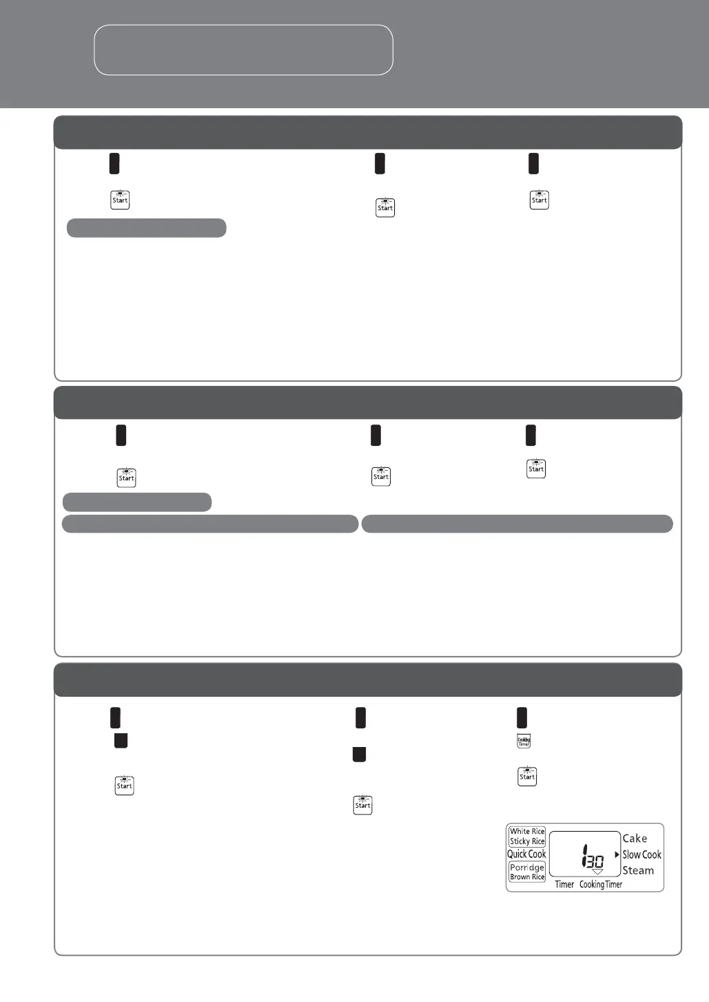 Quick Cook / Porridge / Brown Rice / Slow Cook / Steam / Cake