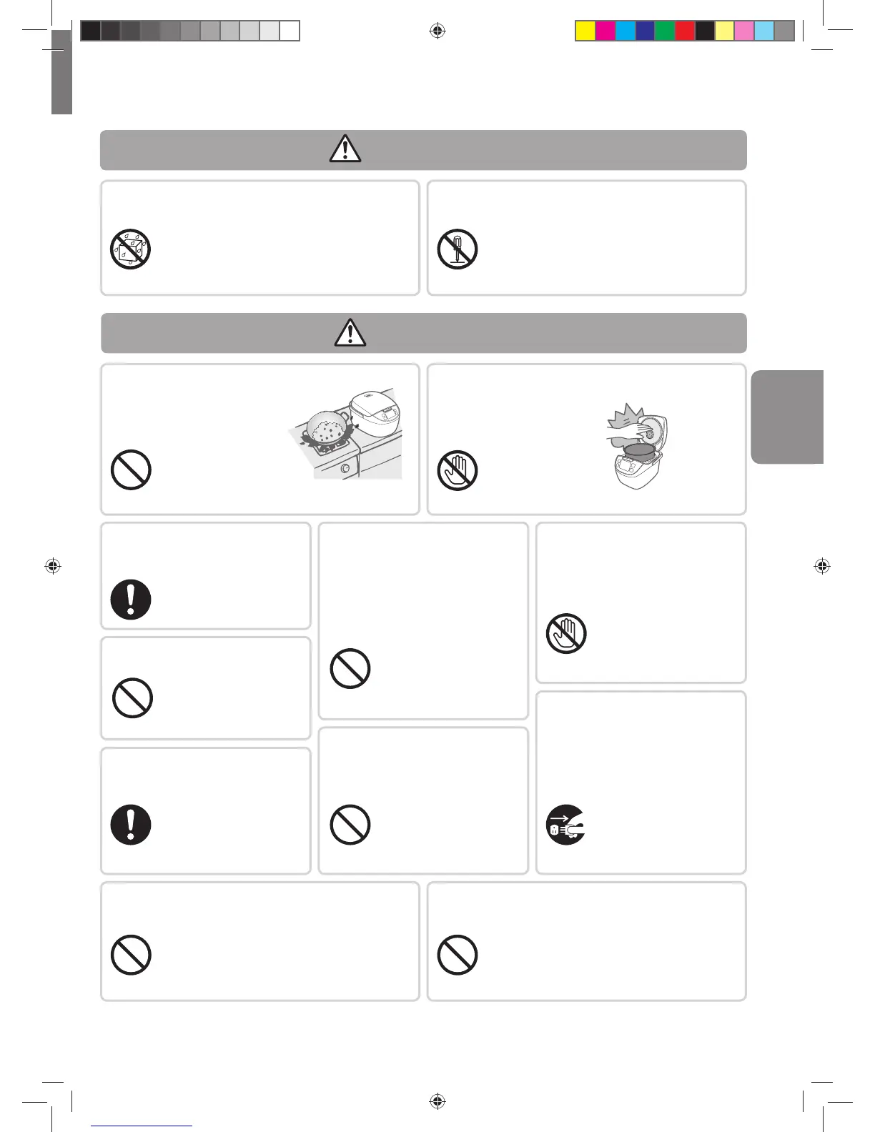 (It may result in electric shock or fire.) (It may result in burning injuries.)