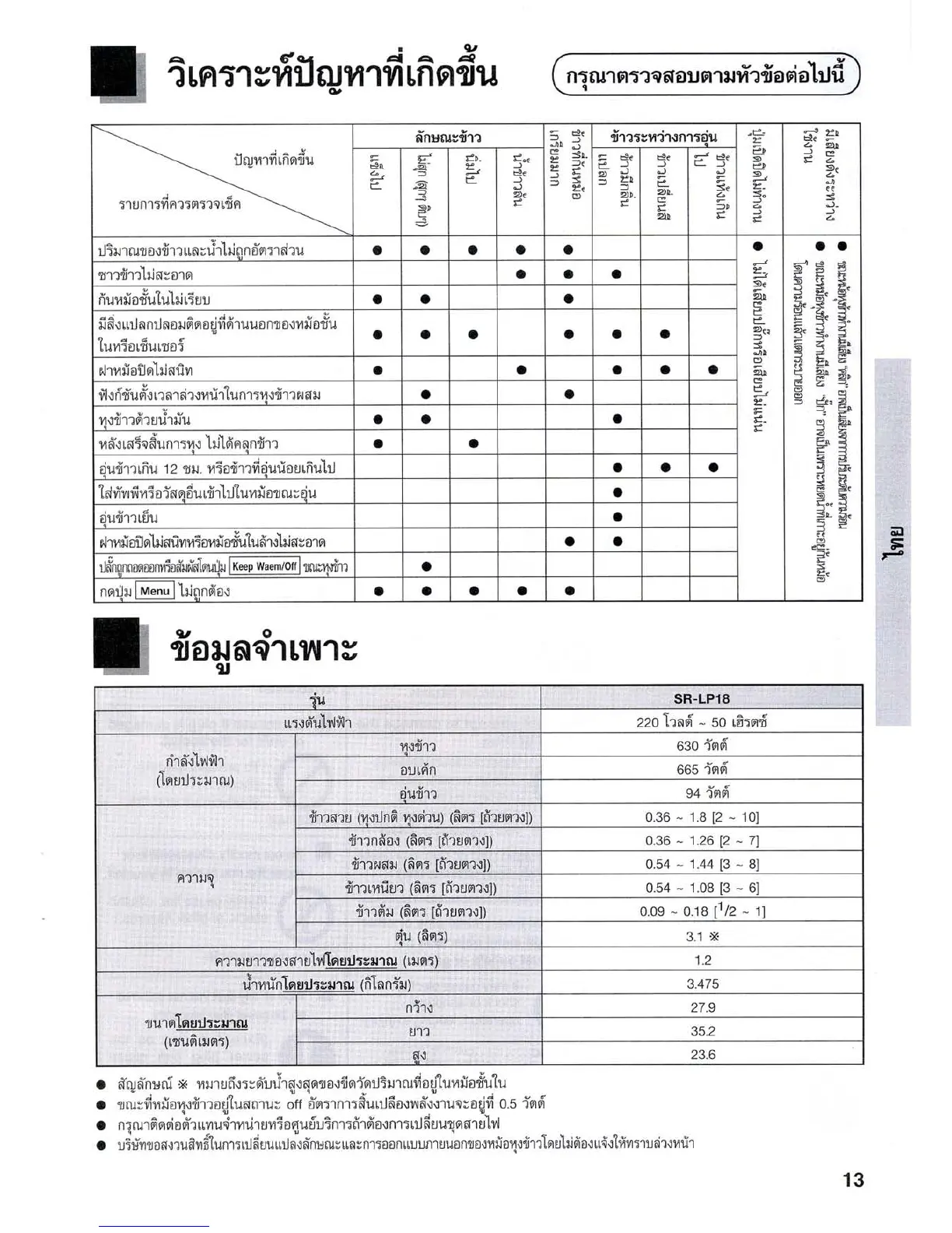 Panasonic SR-LP18 - Page 13