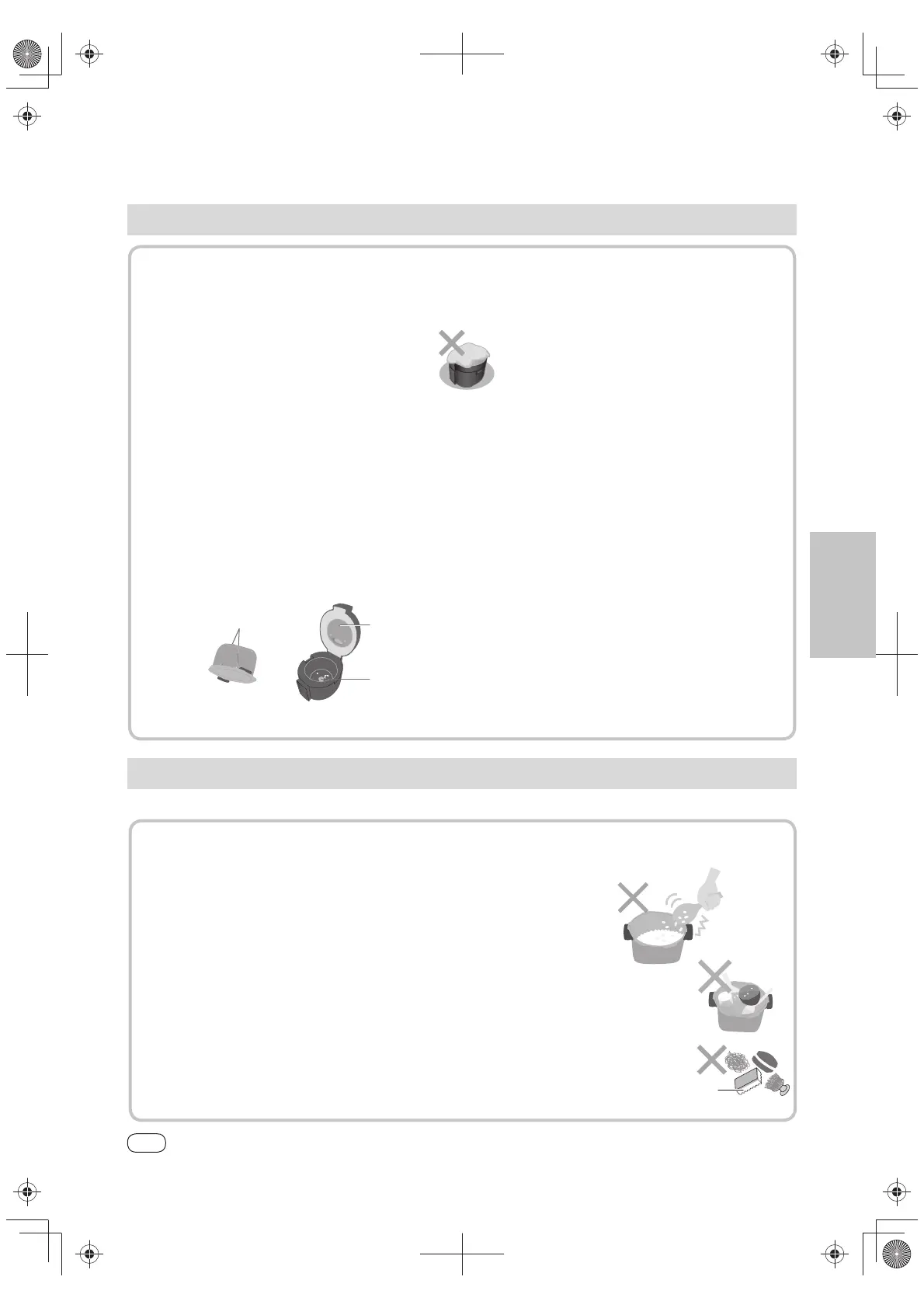 ● Do not use the pan as a washing-up bowl. Also do not put spoons or tableware into the pan.