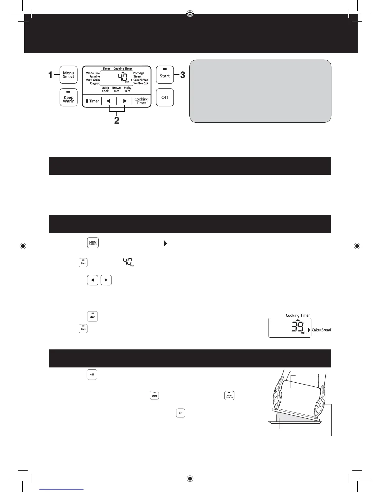 • You can set the cooking time from 20 to 65 minutes (5 minutes increment).