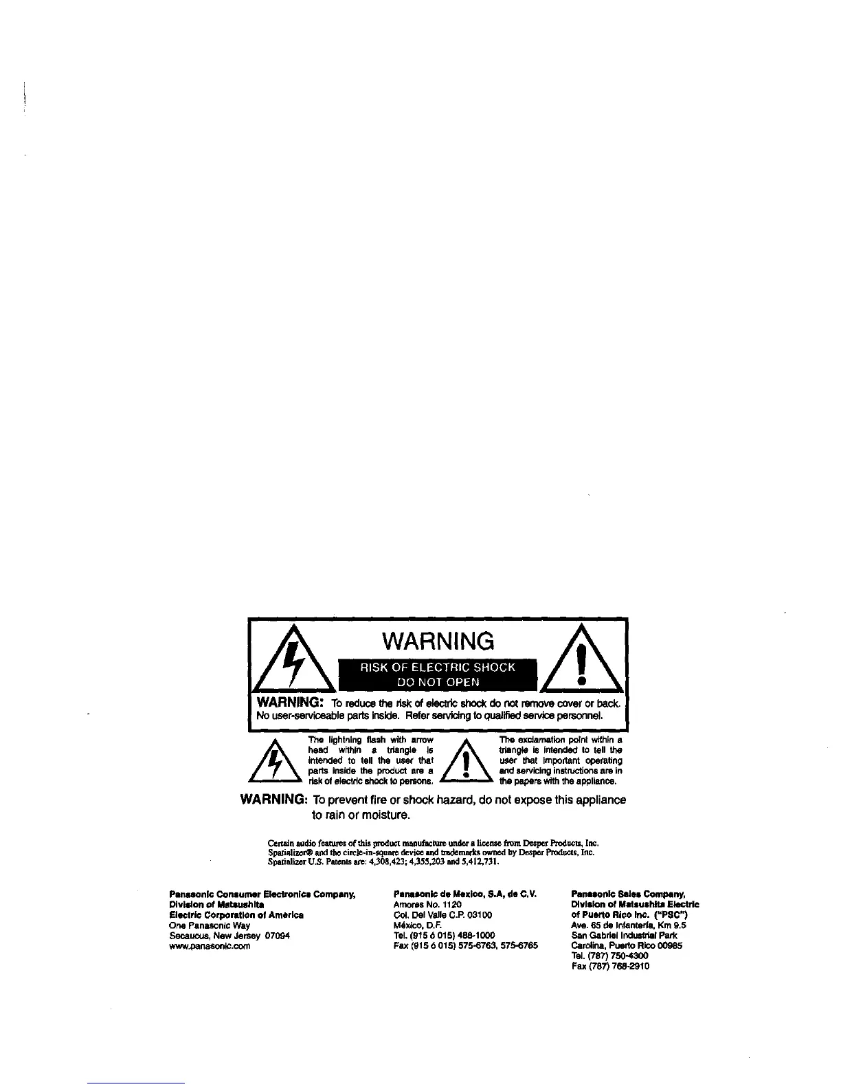 WARNING: Topreventfireorshockhazard,donotexposethisappliance