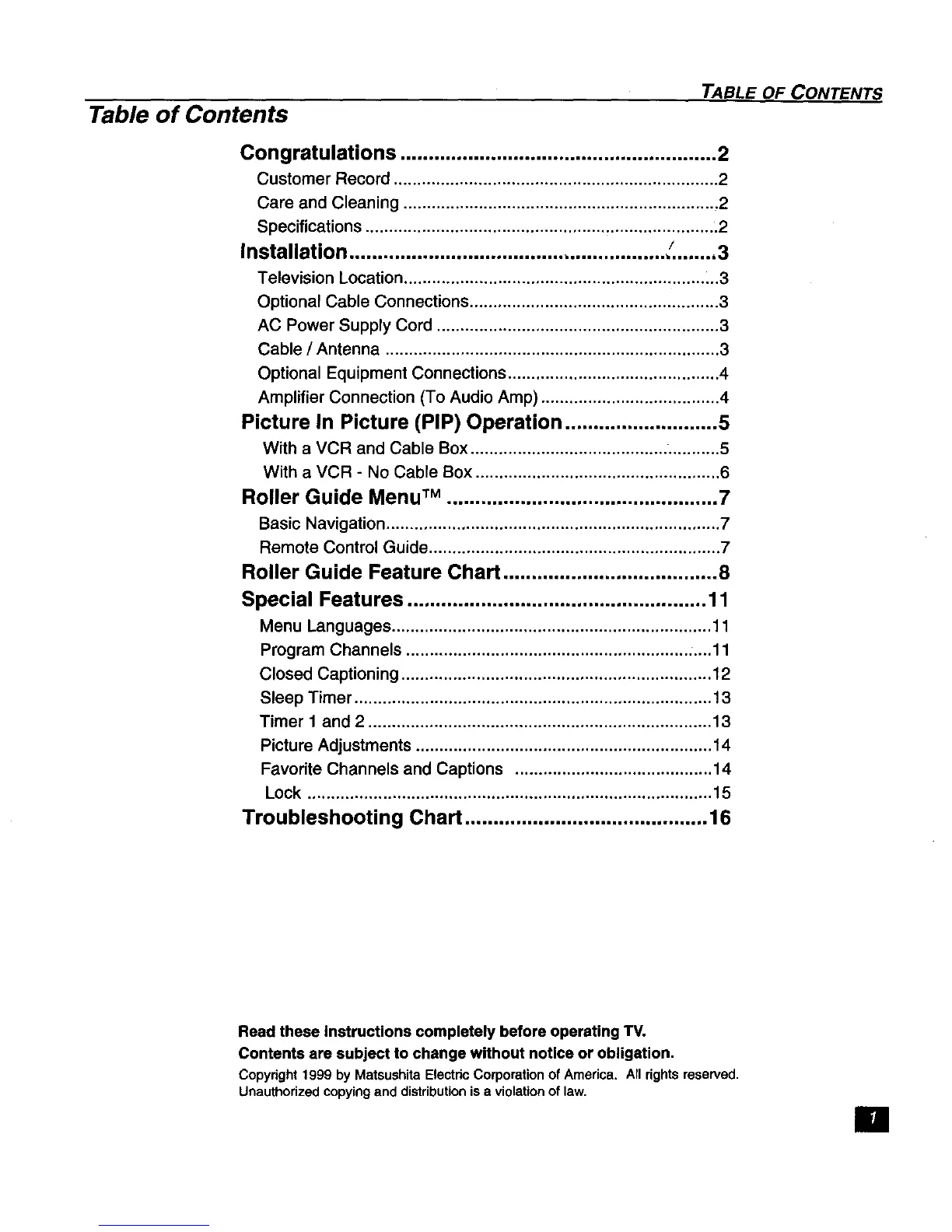 Copydght1999 byMatsushitaElectdcCorporationof America. Anrightsreserved,