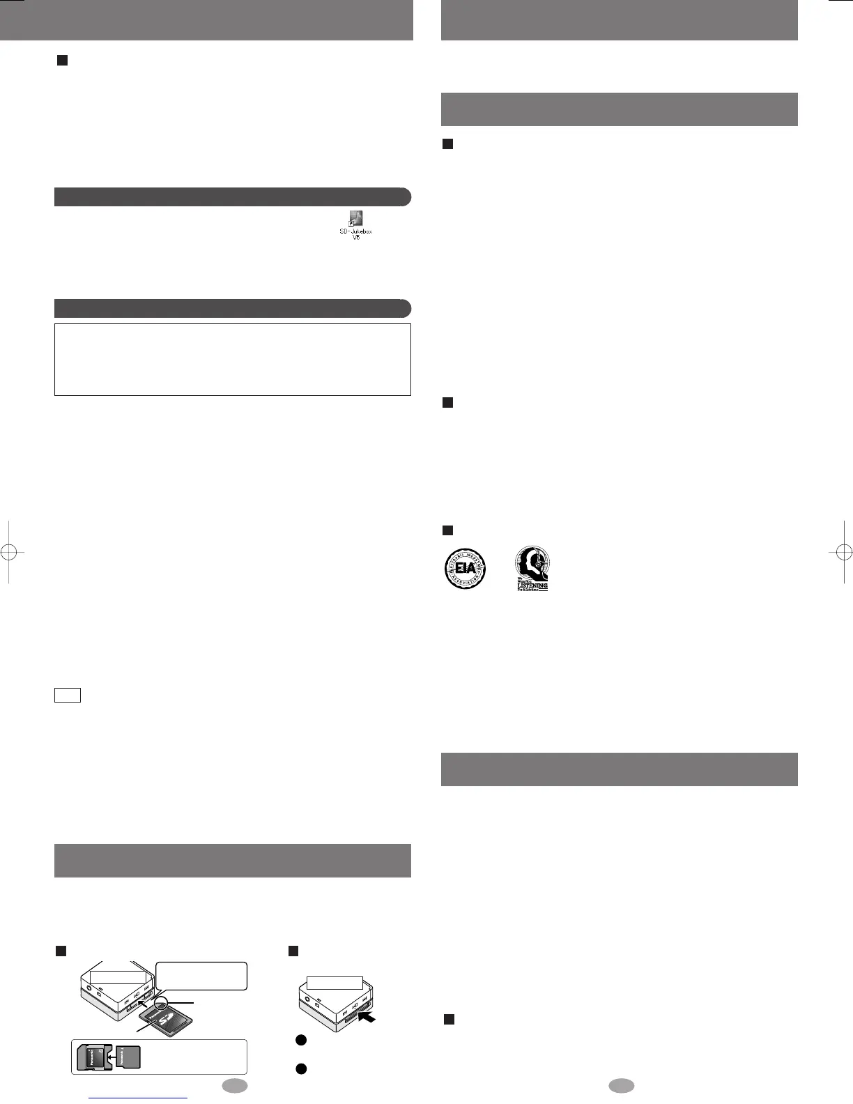 • insert objects other than SD Memory Cards and rechargeable battery.