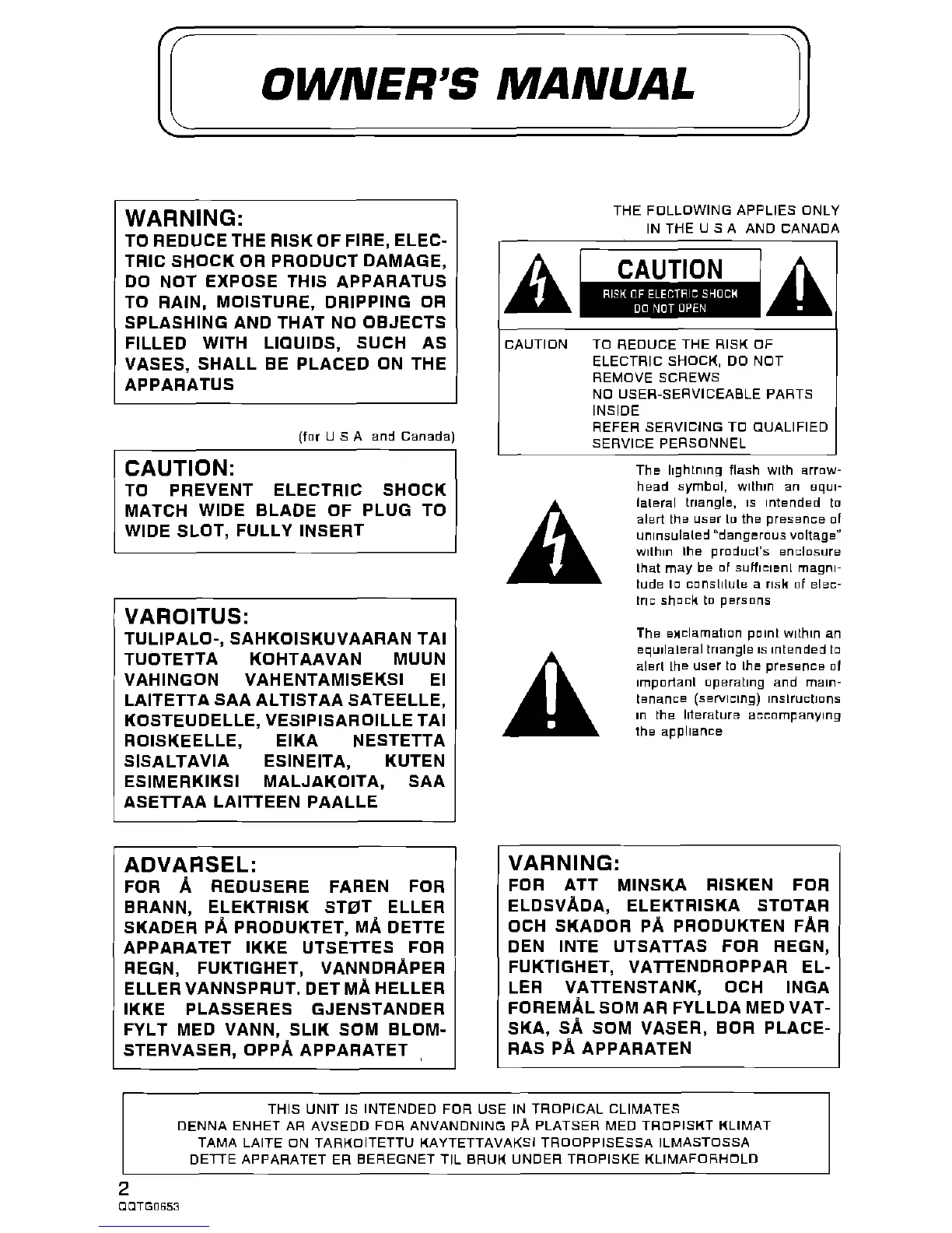 Panasonic SX-NP10 - Safety Warnings and Precautions; General Product Safety; Electrical Shock Prevention