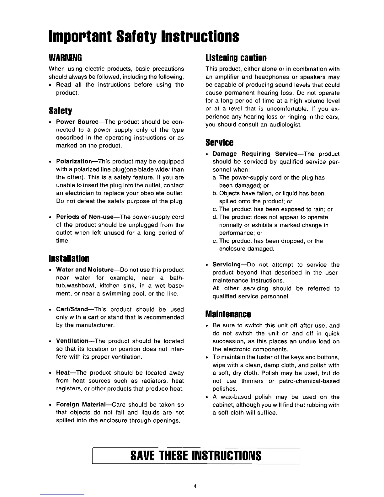 Panasonic SX-PR602M - Safety Instructions; Safe Installation; Safe Maintenance; Damage Requiring Service