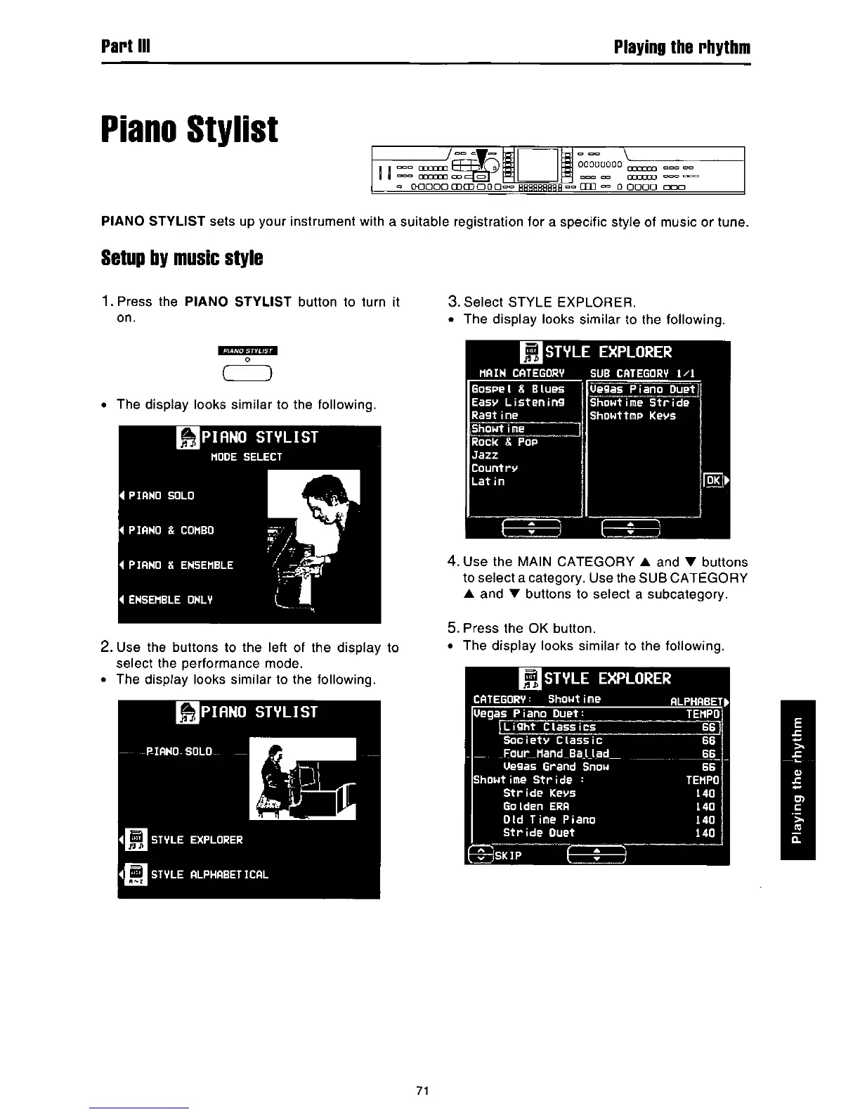 Panasonic SX-PR602M - Piano Stylist; Setup by Music Style