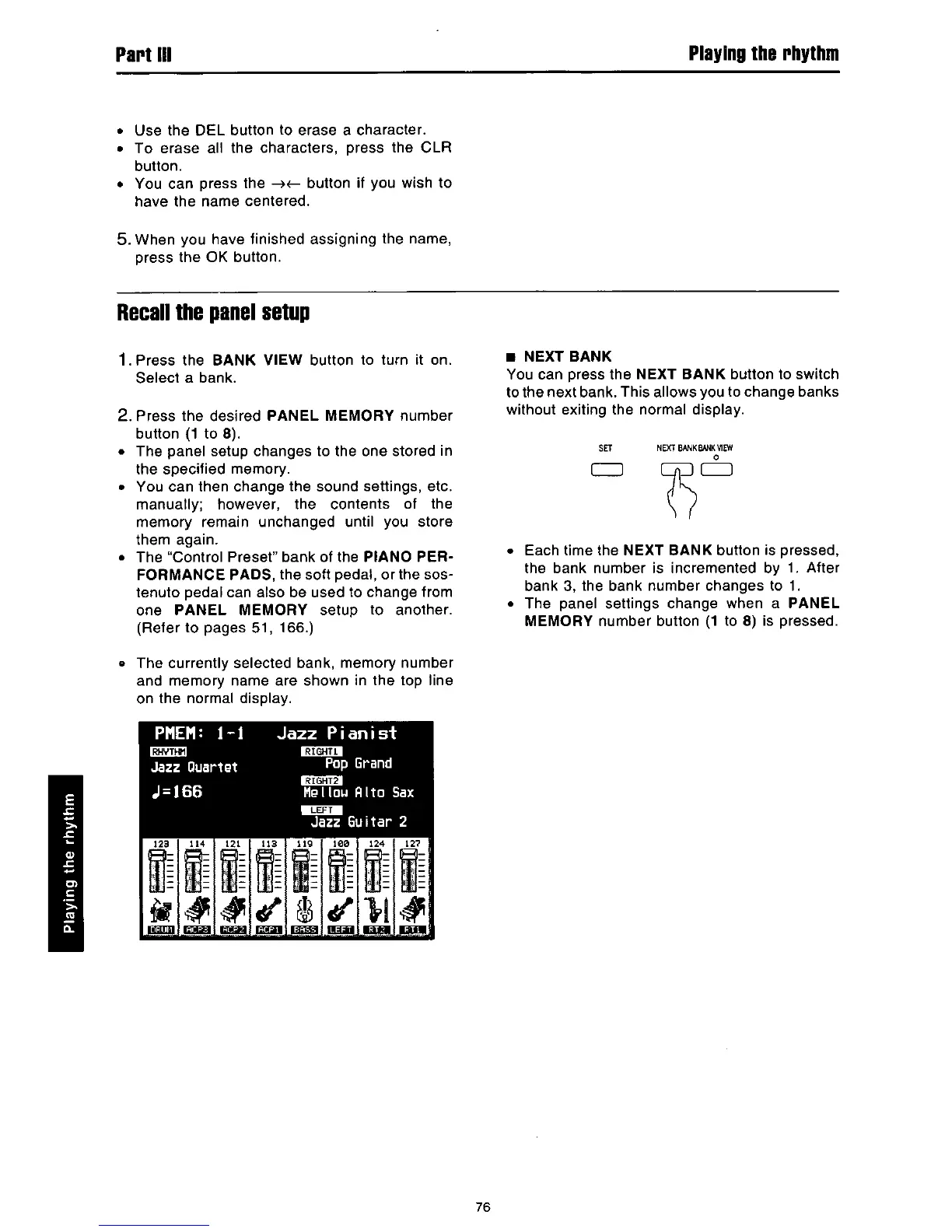 Panasonic SX-PR602M - Recall the Panel Setup; Next Bank
