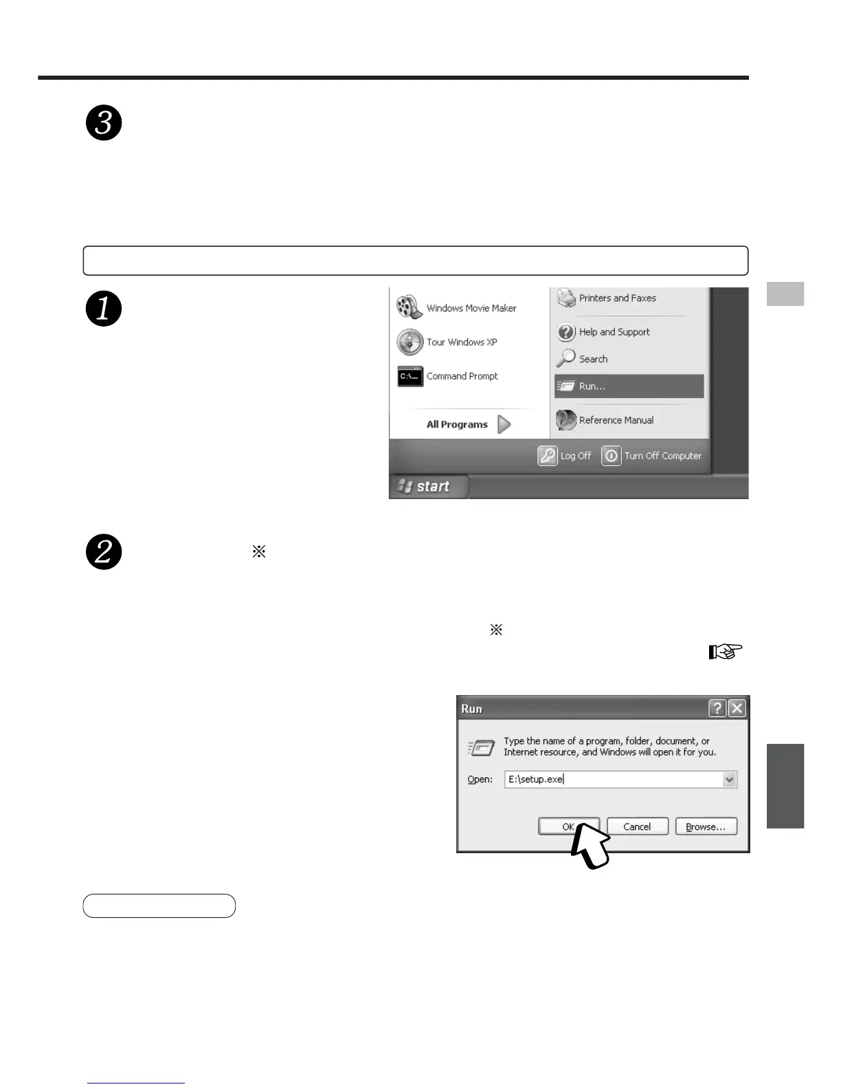 Geben Sie [ : setup.exe] ein und klicken Sie dann auf [OK].