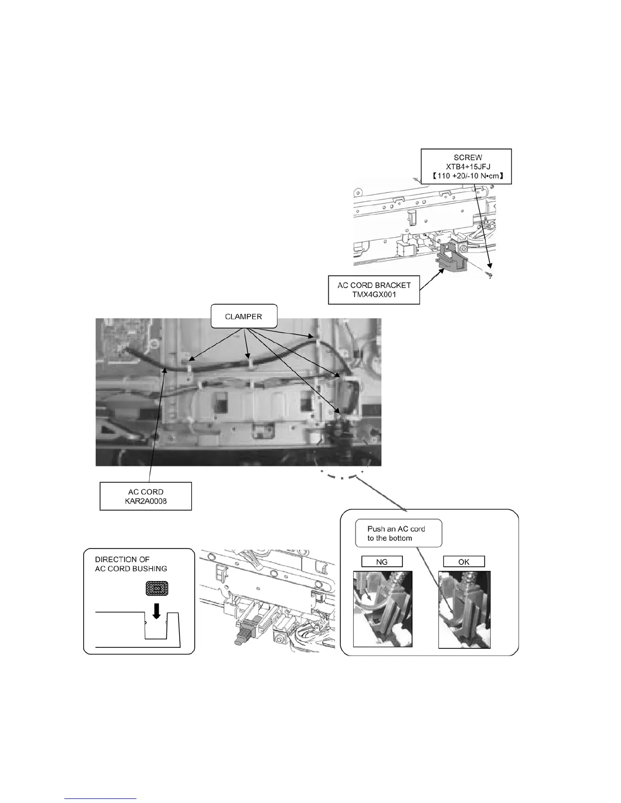 5. Insert AC CORD bushing into the AC CORD BRACKET.