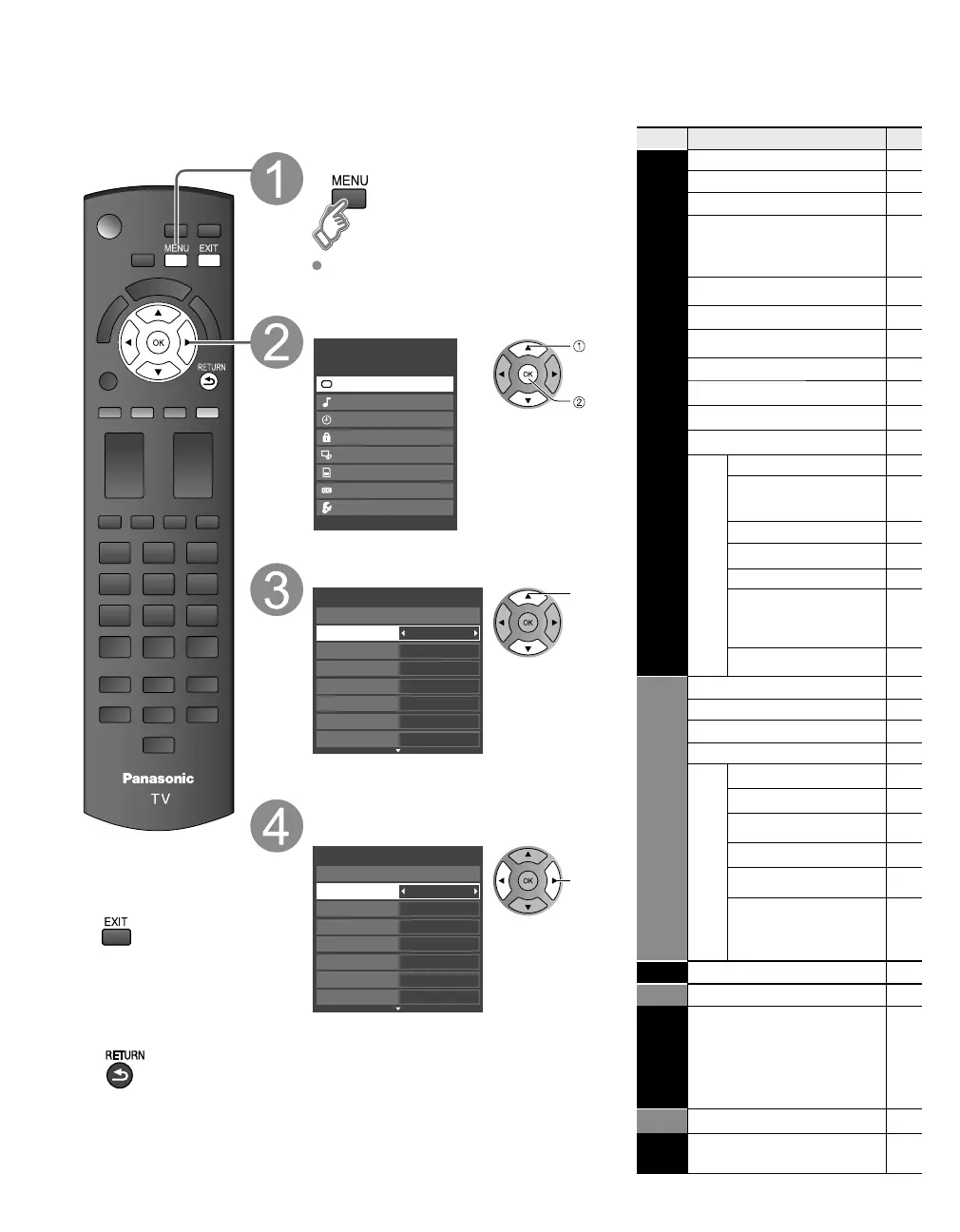 Liste de menusDivers menus vous permettent d’effectuer les paramétrages de l’image,