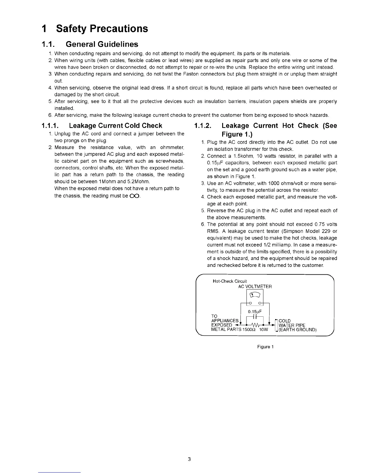 6. After servicing, make the following leakage current checks to prevent the customer from being exposed to shock hazards.