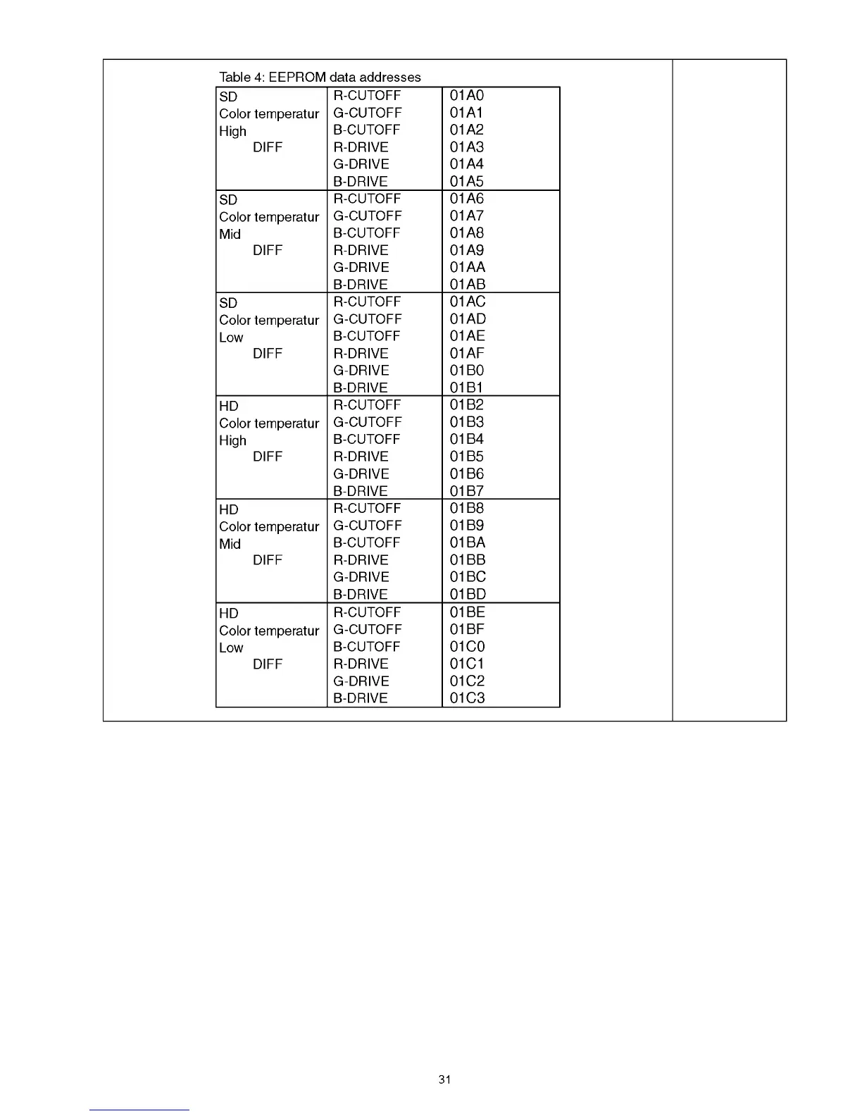 Table 4: EEPROM data addresses