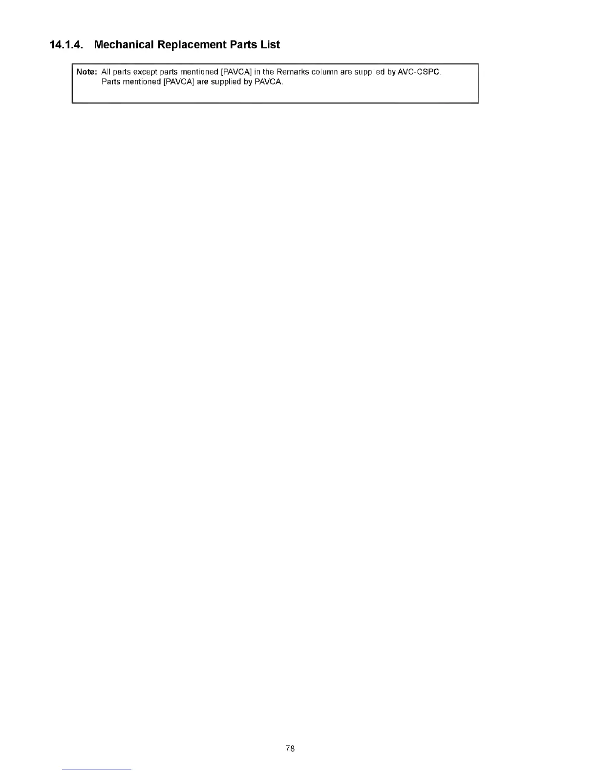 Note: All parts except parts mentioned [PAVCA] in the Remarks column are supplied byAVC-CSPC.