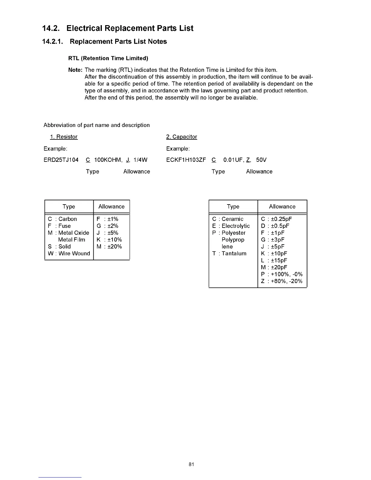 14.2.1. Replacement Parts List Notes