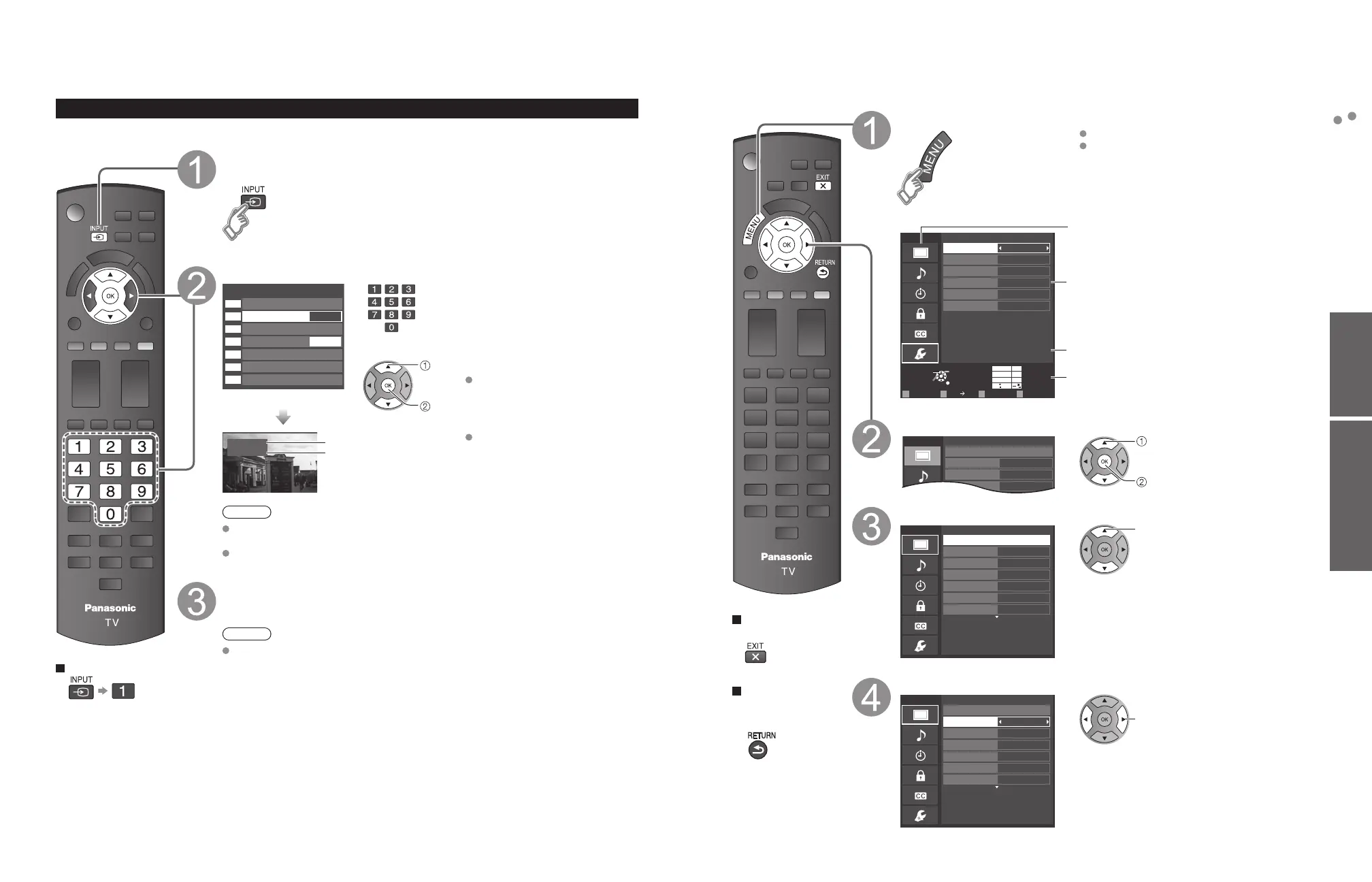 Various menus allow you to make settings for the picture, sound, and other functions so that you can enjoy