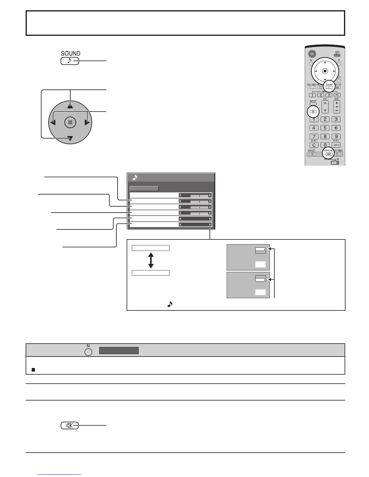 While the “SOUND” menu is displayed, if either the N button on the remote control is pressed at any time or the ACTION