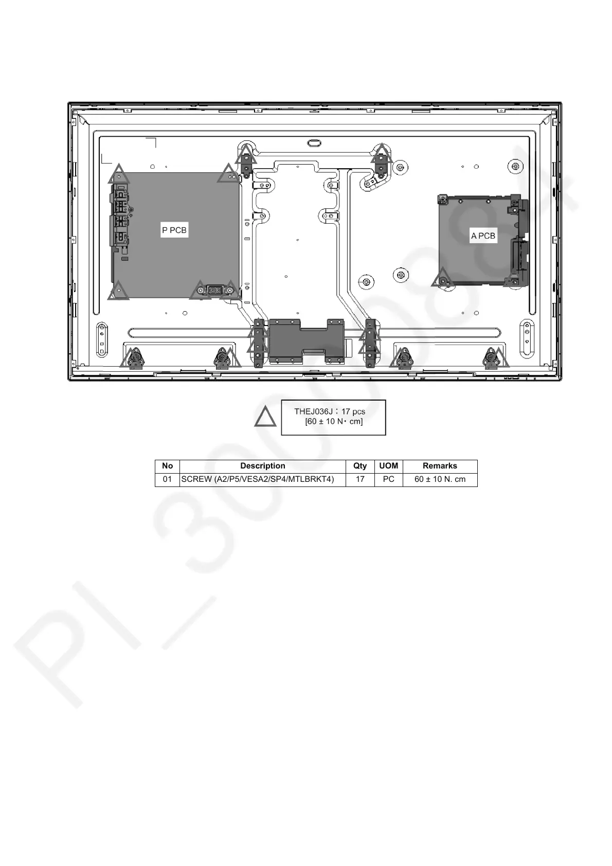 01 SCREW (A2/P5/VESA2/SP4/MTLBRKT4) 17 PC 60 ± 10 N. cm