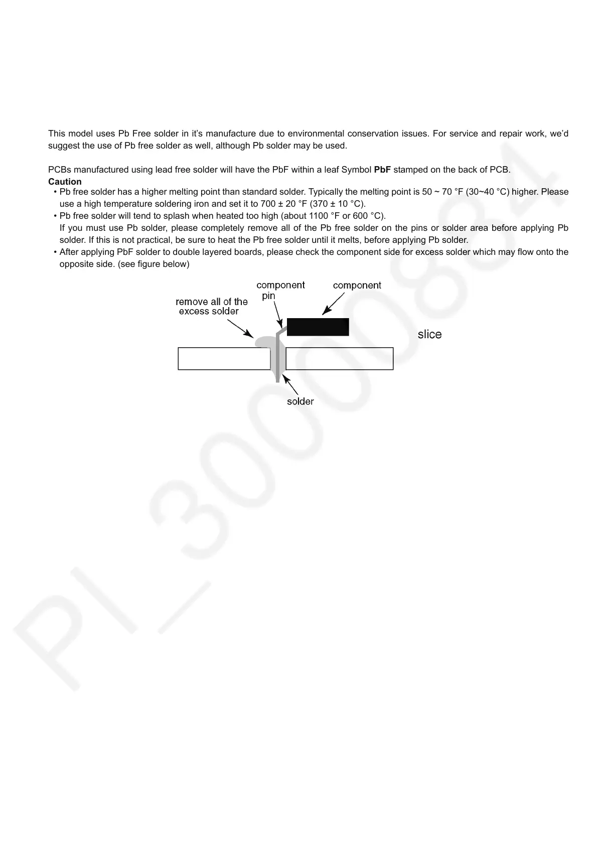 • After applying PbF solder to double layered boards, please check the component side for excess solder which may flow onto the